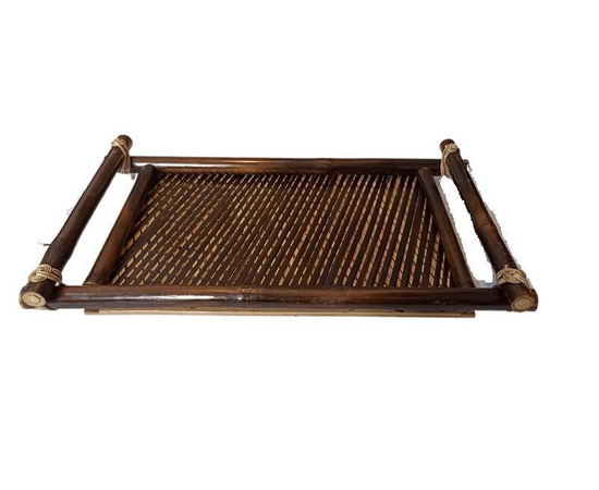 India Handmade Bamboo Serving Tray Strong Handles, Serving Tray for The Tastiest & Healthier Platters | Tea | Coffee | Snacks | Breakfast | Dinner Tray