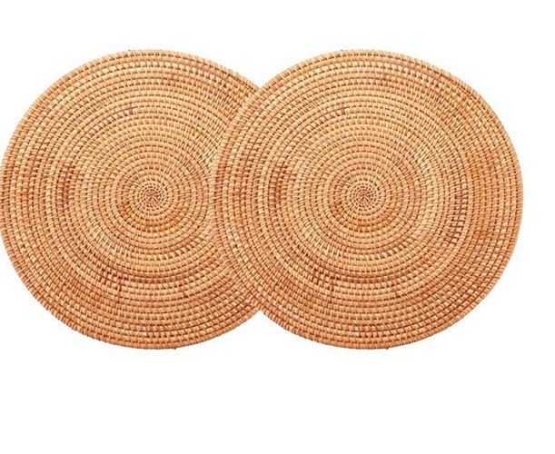 Handmade Cane dining mat | Kitchen Dining Table mat Cane 2 Pack Handwoven Rattan Placemats | Round Wicker Table Mats |