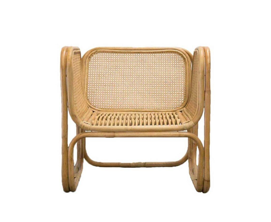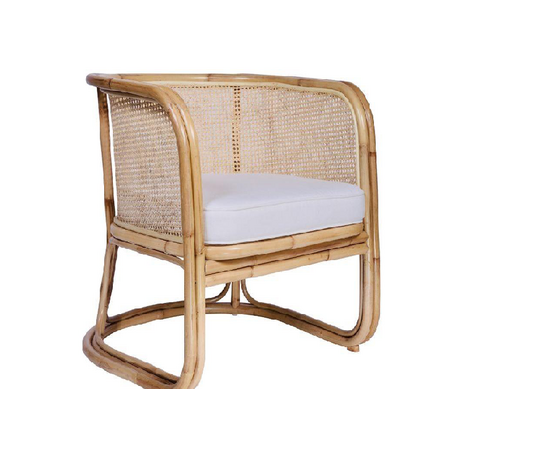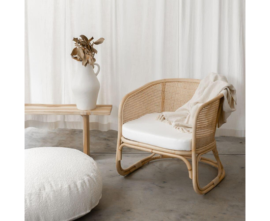100% natural woven cane seat and back Rattan side and back panels Handmade with non treated materials. Finish by pairing with a statement cushion for a pop of colour.