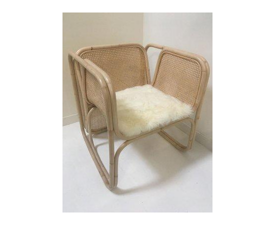 Large armchair in rattan and natural cane, curved structure in rattan, cane wicker, clean and airy lines.RATTAN 6 WIRE WEAVING CHAIR Set of 2 Chair