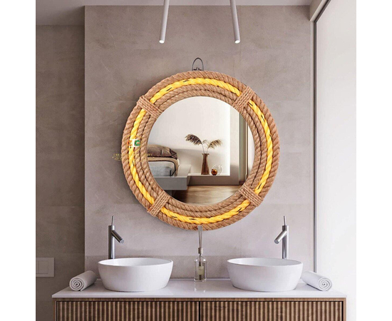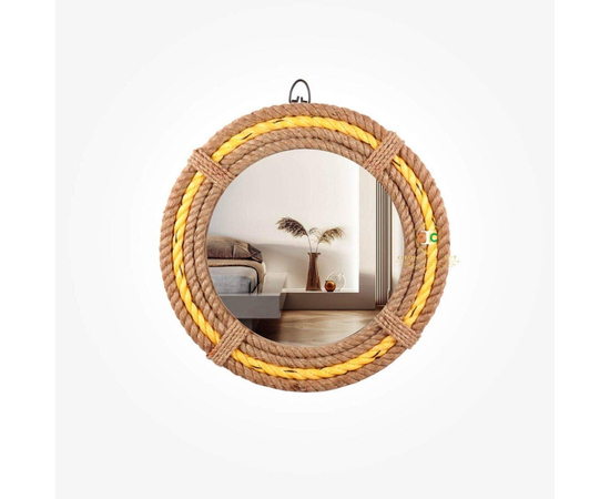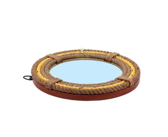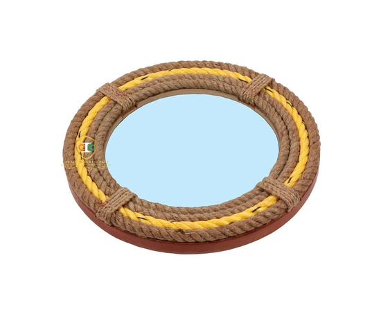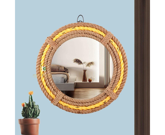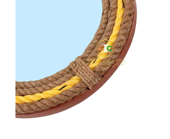 Creation India Craft Wooden Wall Mirror, Rope Wall Hanging, Beautiful Design Handcrafted Round Wall Mirror for Living Room, Bedroom, Home and Office Wall Decor (Yellow and Brown)