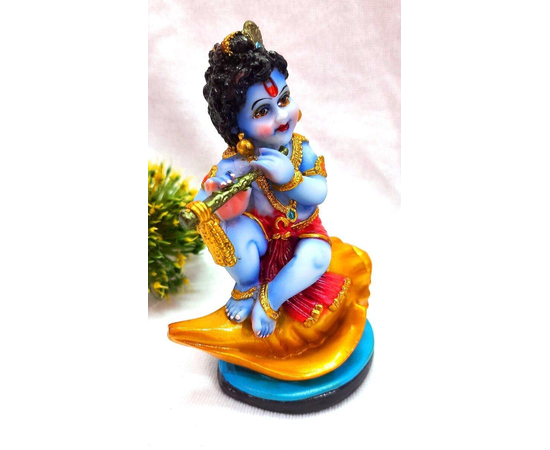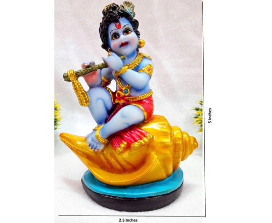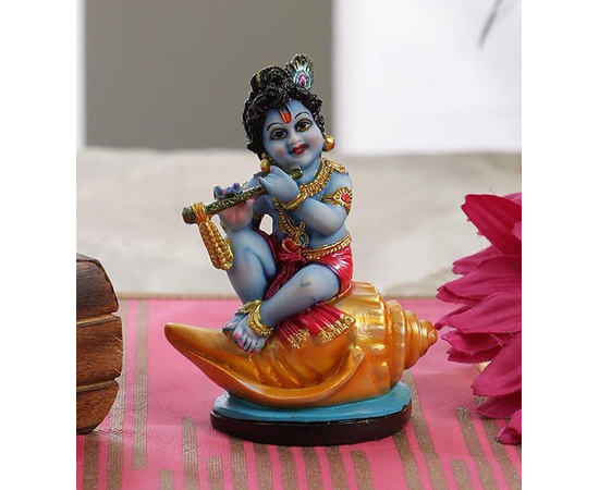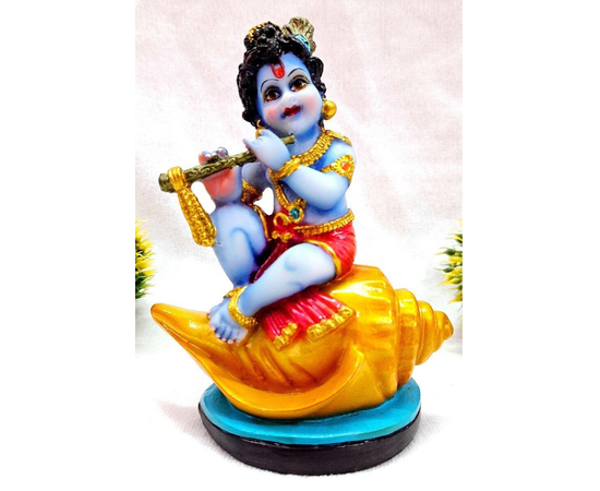 This beautifully hand carved statue of Lord Krishna made out of solid material resin (not metal) and are all handmade. Unique and striking art piece adds three-dimensional texture and the sense of motion to a room. Display individually or in multiples. Elevate your decoration and create a positive atmosphere. This home décor item reflects real life as it depicts the struggle of making it through the difficulties. Lord Krishna Statue Multicolor with antique finish so looks very beautiful and use for the purpose of worship and for home decorative. Bansuri kanha Sculpture design to looks traditional stylish and inspiration from the day's of royal touch, Krishna statue to bring elegance to your home. mayur pankh idol /Baal gopal murti makhan chor Showpiece is use and utility items & an ideals gift it to your dear once to pass on your best wishes.