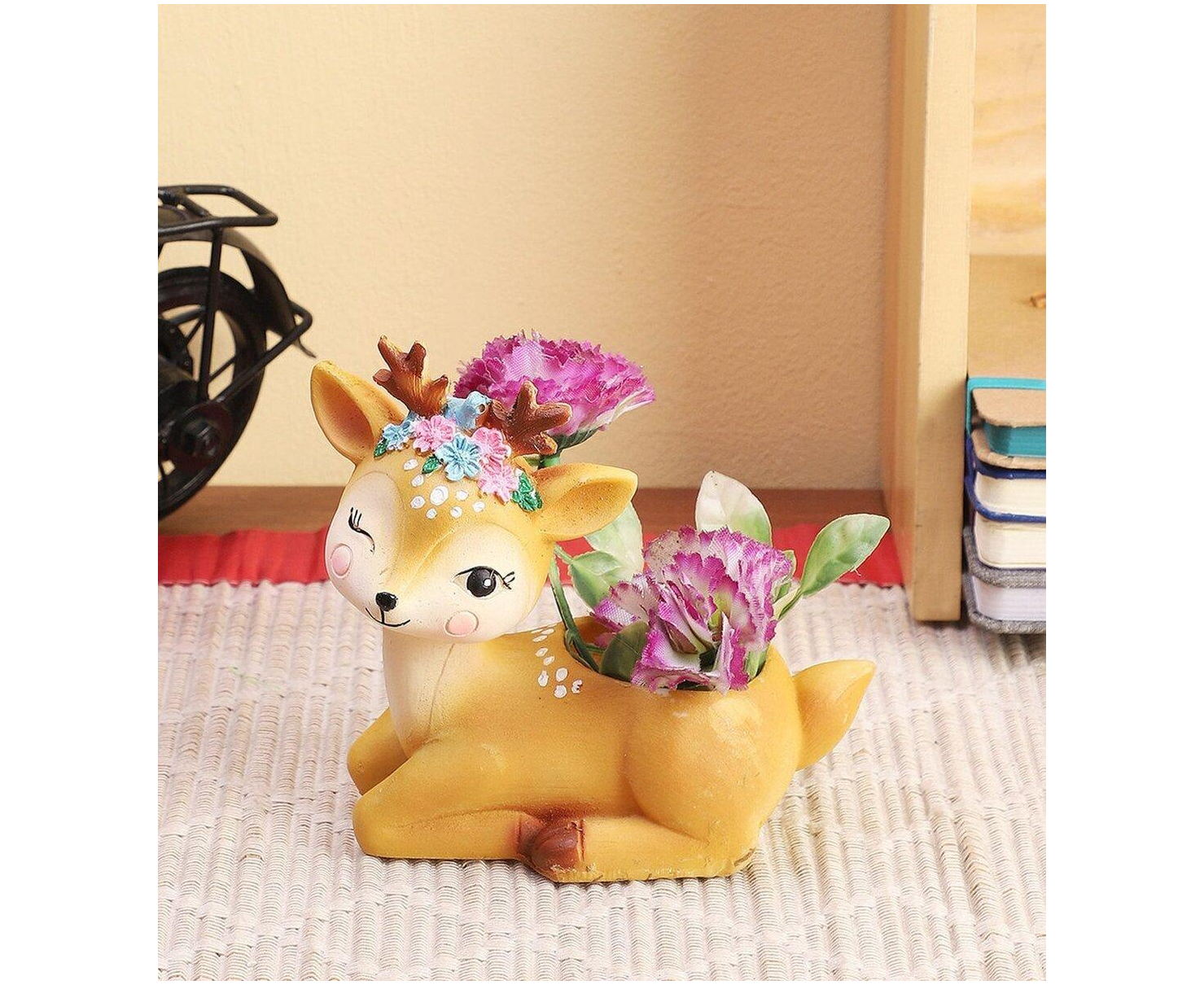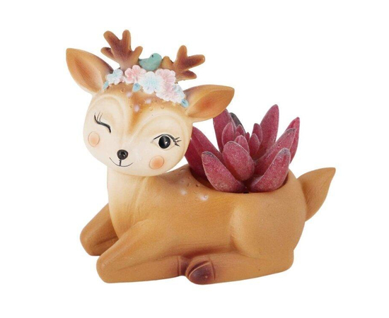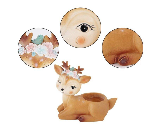 Beautiful Winking Deer Pot | Vintage White Deer Planter | Polyresin Animal Planter | Ceramic Deer Vase | Sitting Planter | Kitchy Home Decor | Succulent Planter