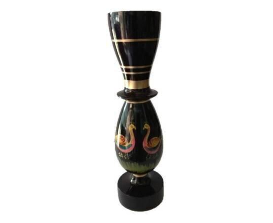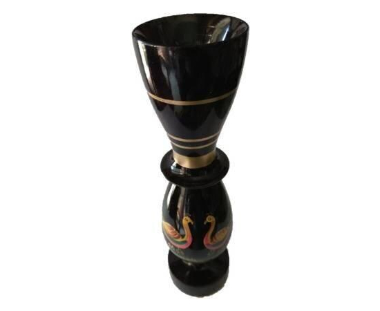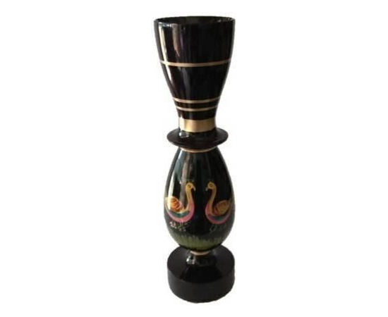 Handmade Wooden Art peacock painted vase, Wooden Vase, Festive needs garden home decor vase pot, Wooden flower pot (10 inch, Black, Multicolor)