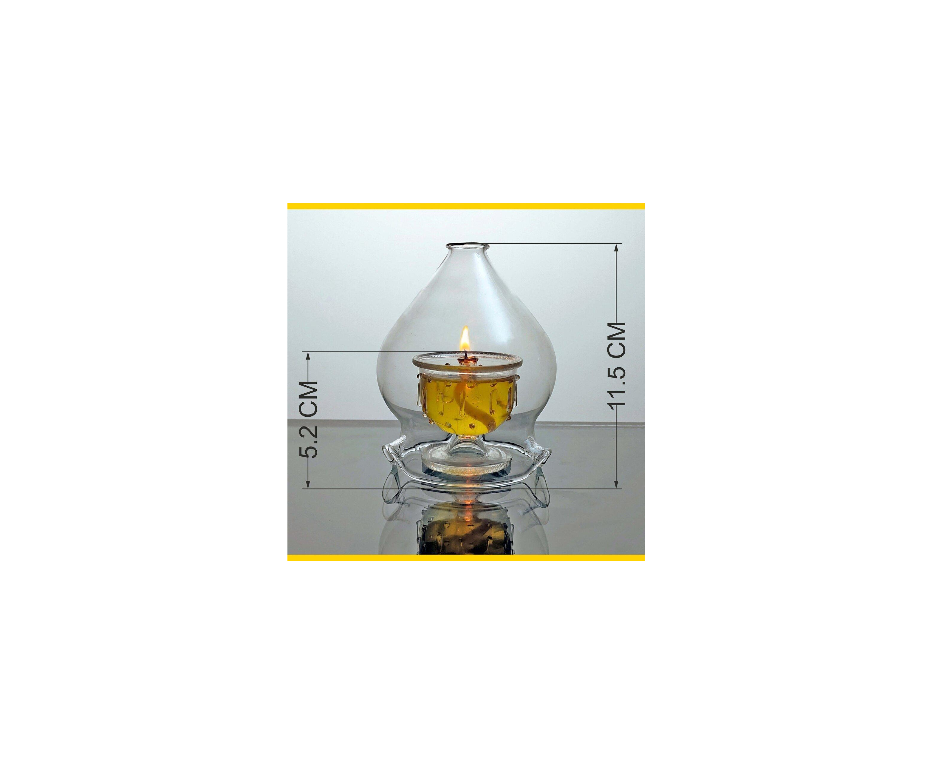 Borosilicate Clear Glass Diya / Borosilicate Mirror Top Akhand Diya/ Akhand Oil Lamp 1 Piece (upto 12 Hrs)