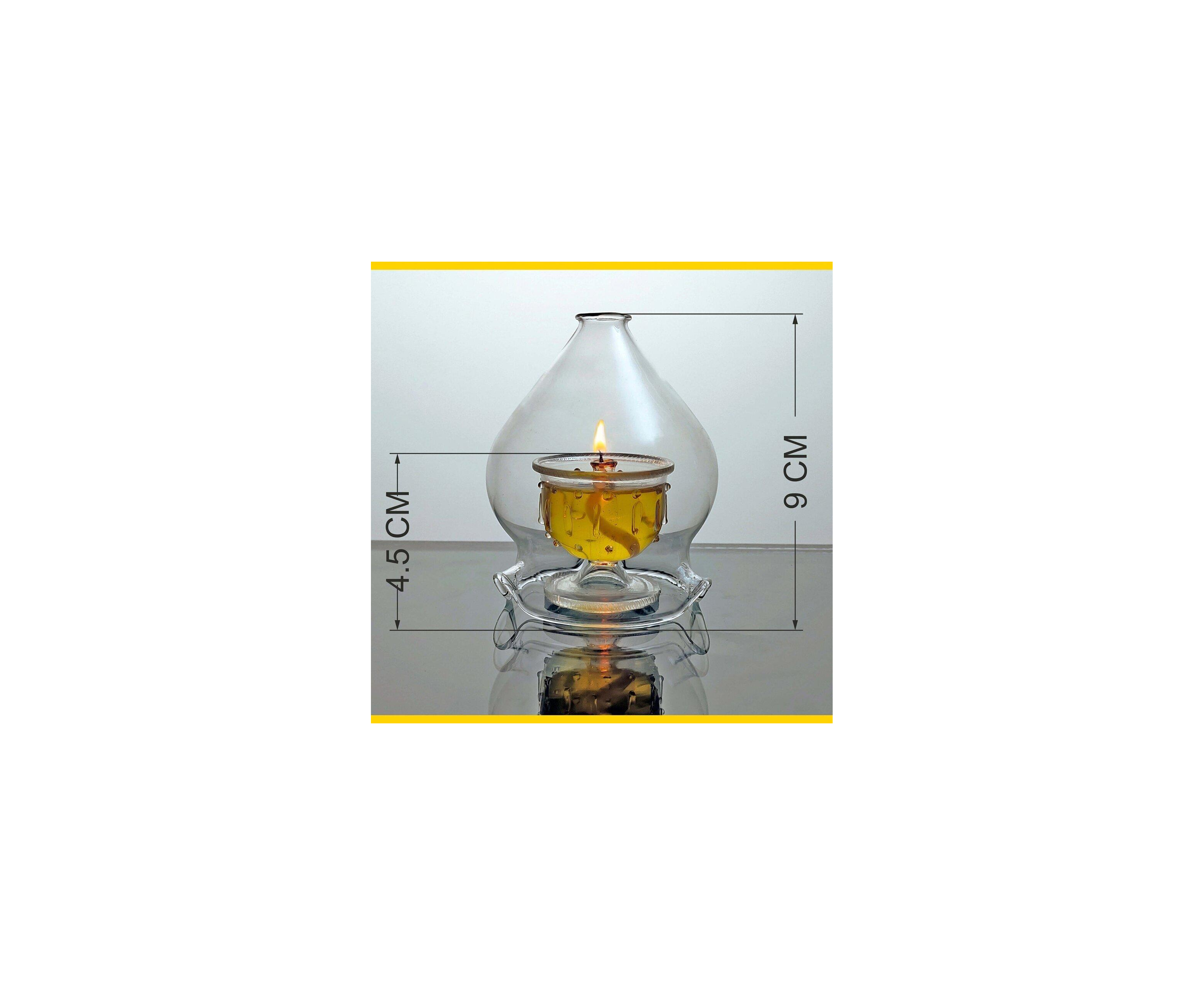 Borosilicate Clear Glass Diya / Borosilicate Mirror Top Akhand Diya/ Akhand Oil Lamp 1 Piece (upto 8 Hrs)