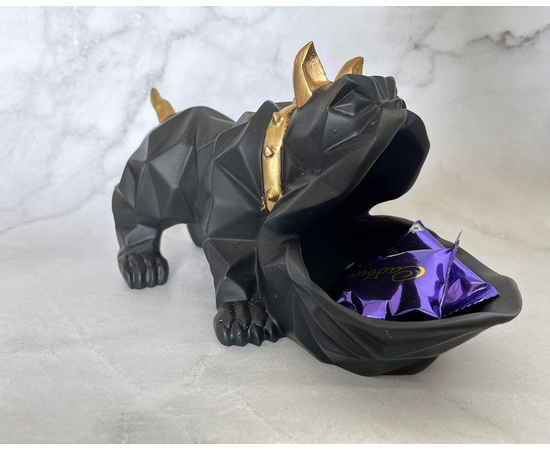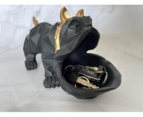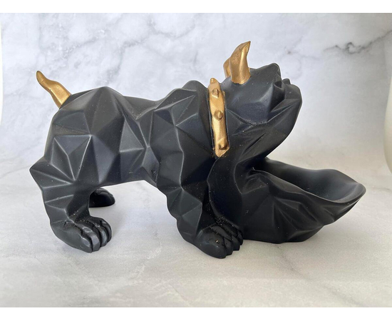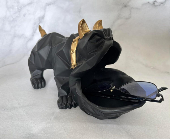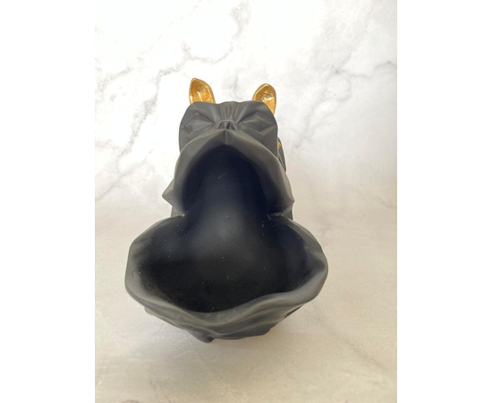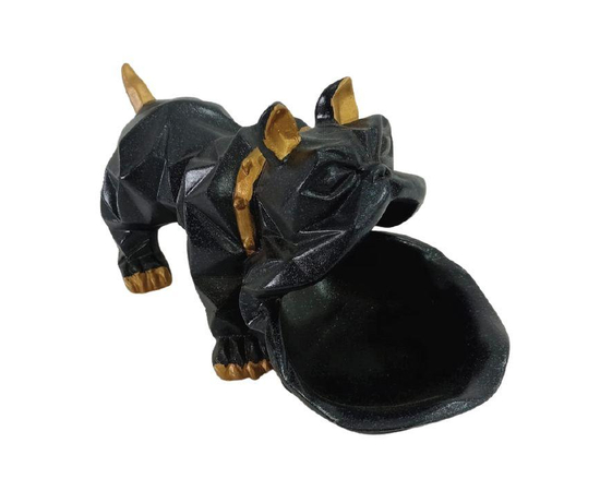 Introducing our elegant black dog-shaped holder with gold accents. This stylish and functional accessory is perfect for keeping your little things like keys, jewelry, coins, chocolates, etc. easily accessible. The sleek black design is complemented by the luxurious gold accents, adding a touch of sophistication and wit to your home decor. The key holder is made of high-quality materials, ensuring durability and longevity. This holder is not only practical but also a beautiful addition to any space.
