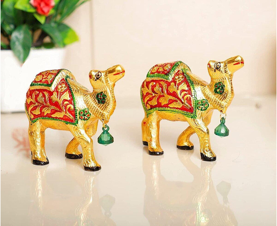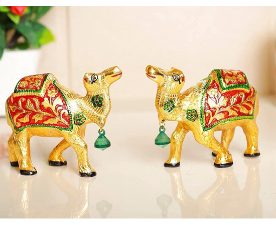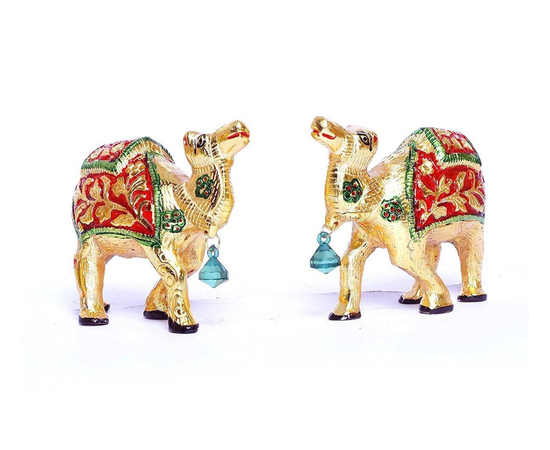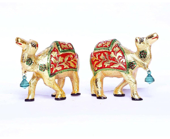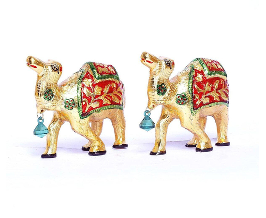 Our White Metal Gold Antique With Meena Kari Work 2Pcs Camel Set Idol is an impressive piece of art that is made from the finest-grade raw materials and intricately designed by our teams of adroit designers and craftsmen using high-end technologies.