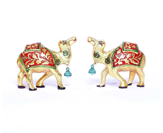 Camel Set Metal Statue with Beautiful Meenakari Work/ Handmade Decorative Camel Status Pair/ Animal Statue/ Feng Shui & Vastu Showpiece For Table Decor