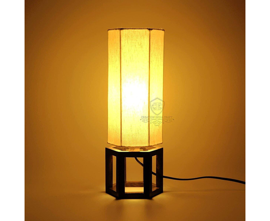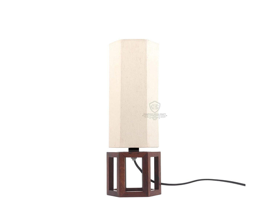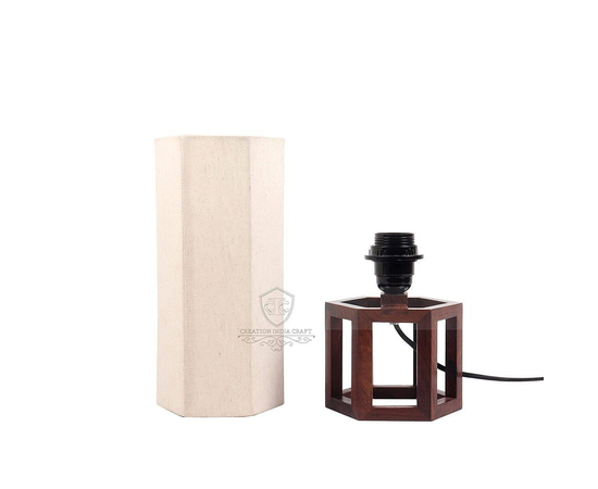 Creation India Craft Hexagonal Table Lamp for Living Room Bedroom Bedside Lamp, Sheesham Wooden Bedside Table Lamps for Home Decoration, Brown and Off White, 1 Lamp