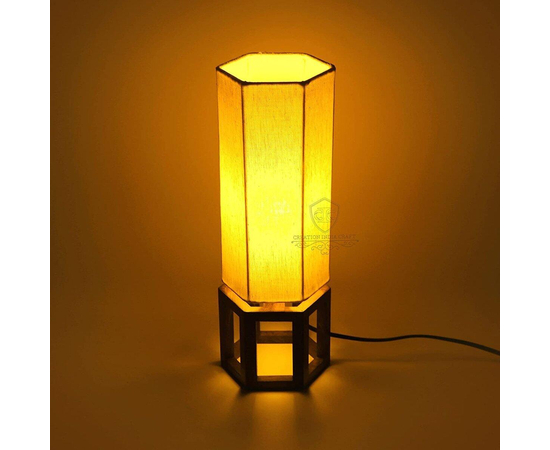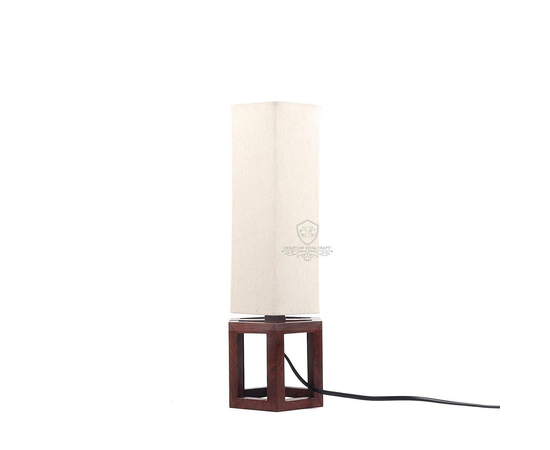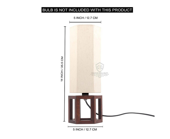 - Base is handcrafted in sheesham wood and the shade is made up of cotton cloth wrapped over polyvinyl.