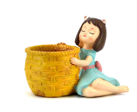 Cute Girl with Front Basket Pot, Girl Succulent Planter, Girl Flower Pot, Mini Planter, Pots for plant, Girl Planter, Succulent Pots, Cactus Planter, Bonsai Plant Pot