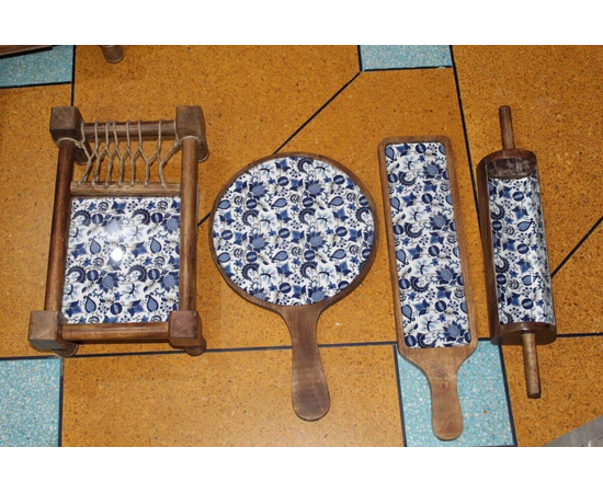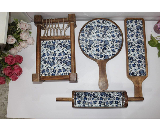 Dark Blue KHAT PLATTERS Set of 4 platters (Khatiya Platter , Pizza Platter Bat Platter, Belan Platter)