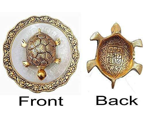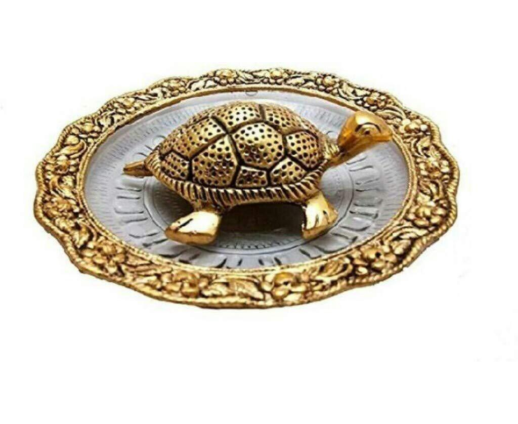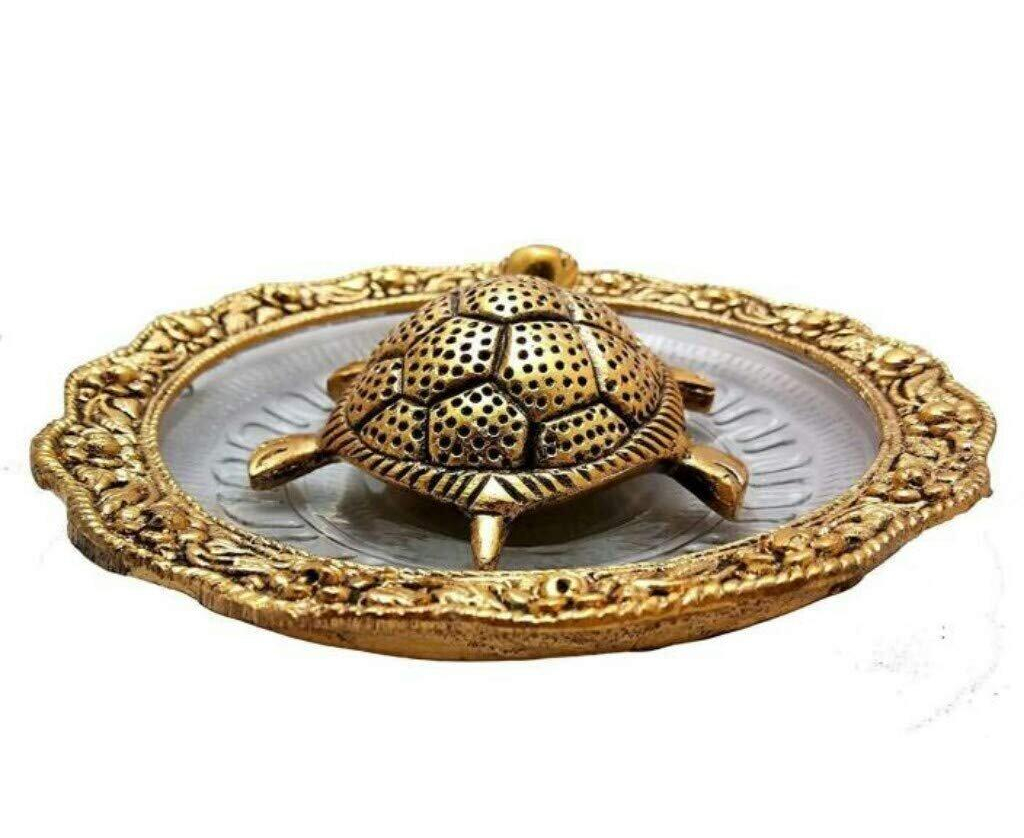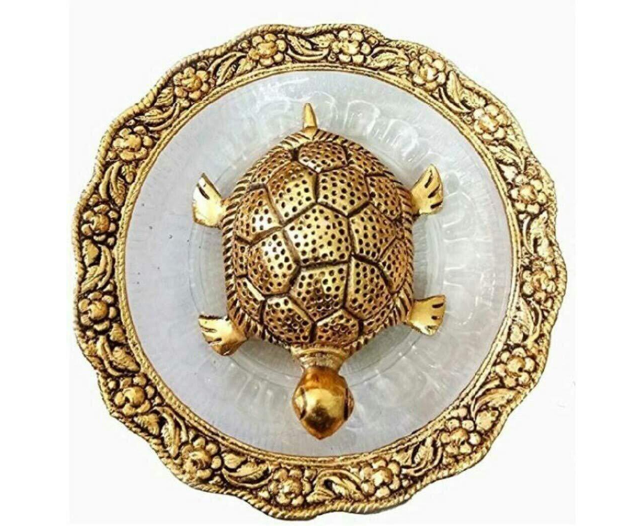 Decor And Art Metal Tortoise With Glass Plate (Gold Plated), For Good Luck & Career, Trutle Plate Yantra, Feng Shui, Vaastu (Aluminum) Decorative Showpiece
