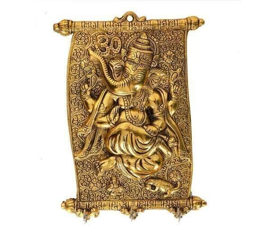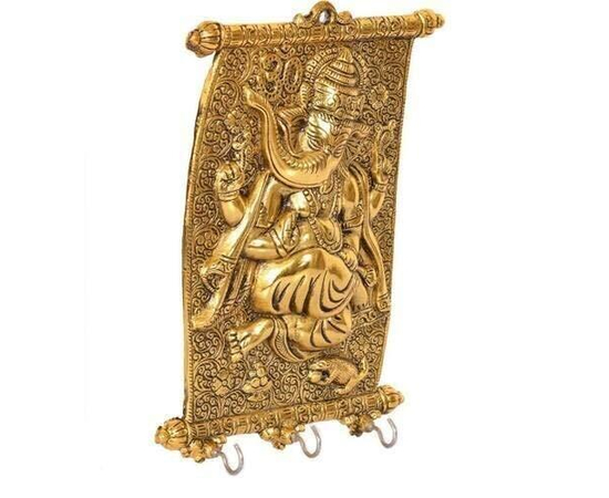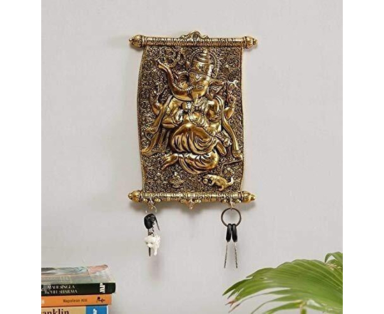 Decorative Metal Wall Hanging Ganesha with Key Chain Hangers / Golden Calendar Ganesha ji Key Holder/ Indian Key Hanger / Gift for House Warming