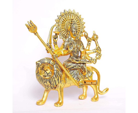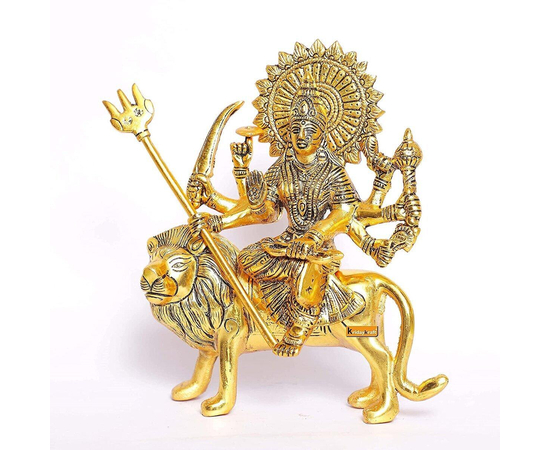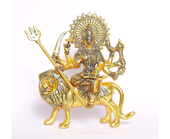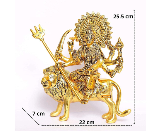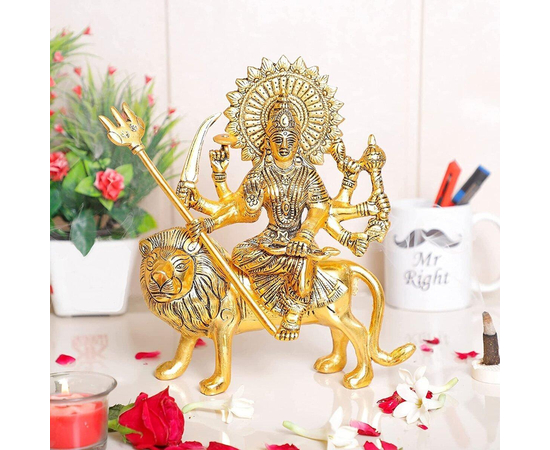 Durga Maa Murti Idol, Goddess Durga Metal Statue for Temple Pooja, Shree Maa Durga Metal Statue Figurine, Shero vali maa Statue, Decor Your Home, Showpiece Figurines, Religious Idol Gift Article