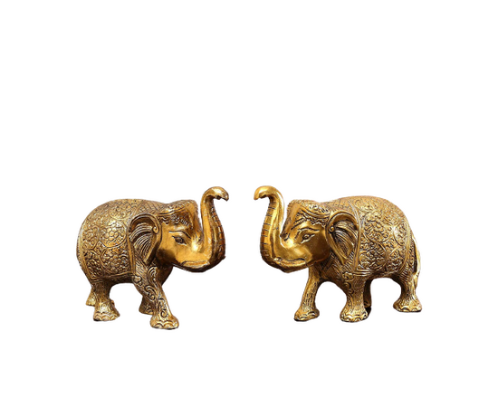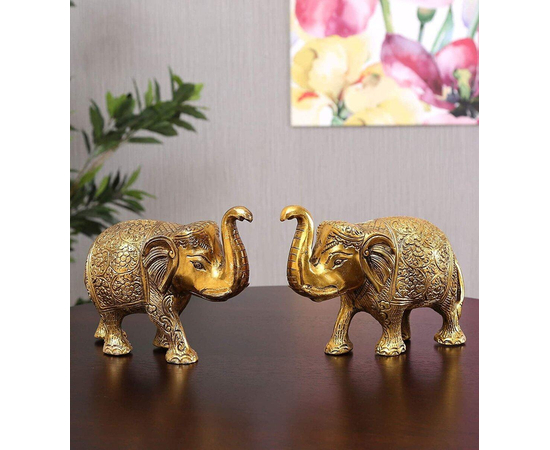 Elephant Metal Statue Medium Size Gold Polish 2 pcs Set for Showpiece Enhance Your Home, Office Table Decorative & Gift Article, Animal Showpiece Figurines