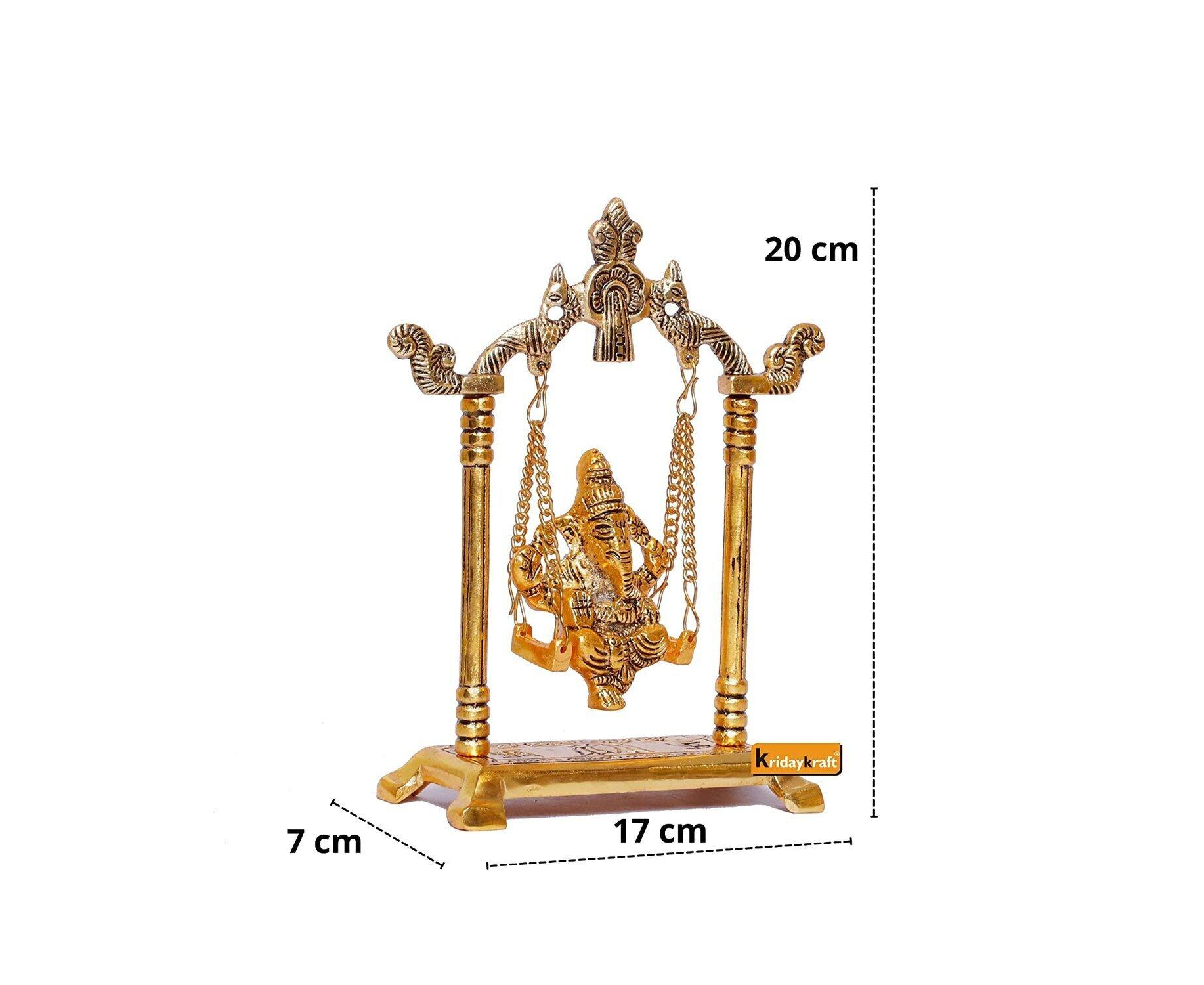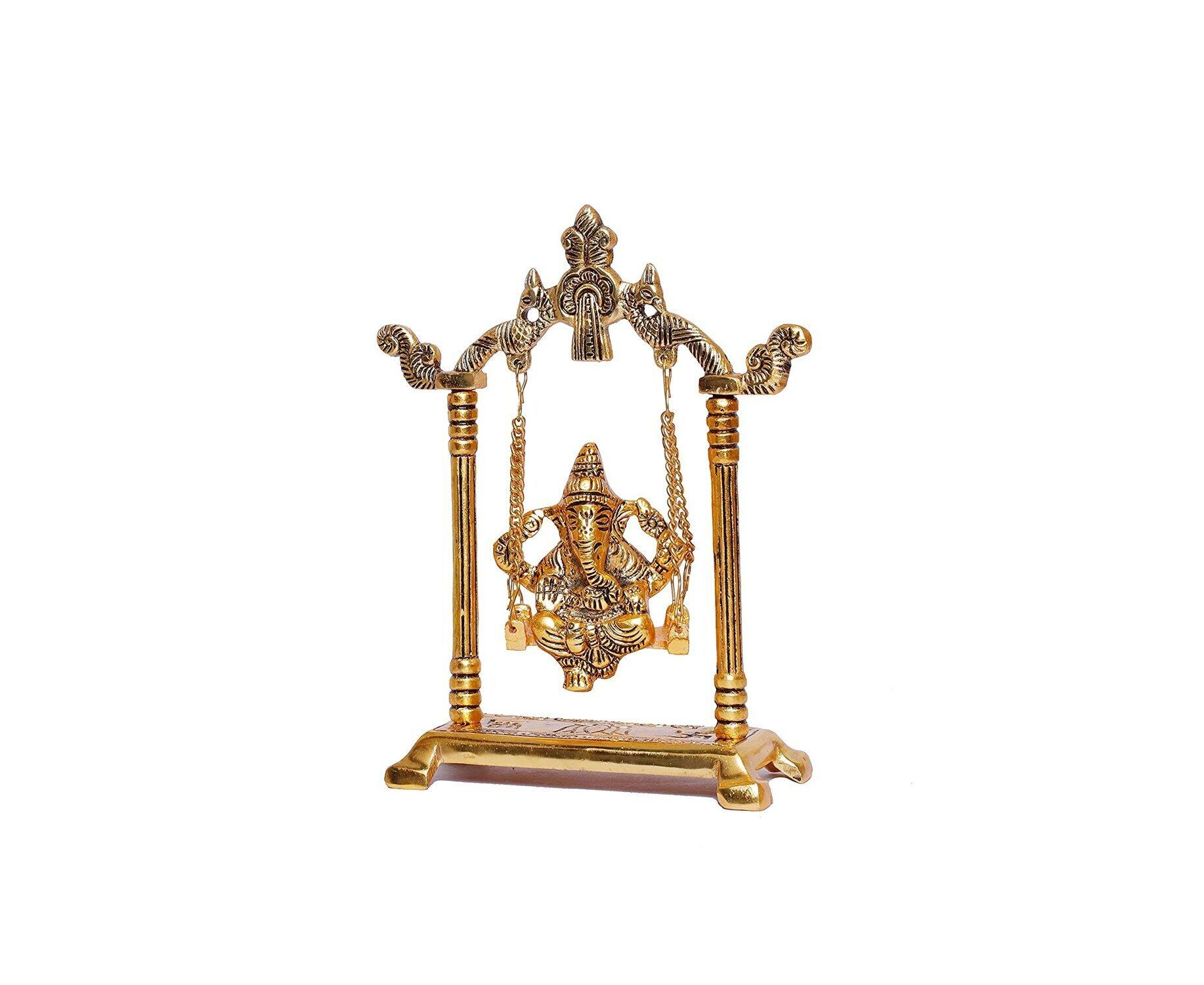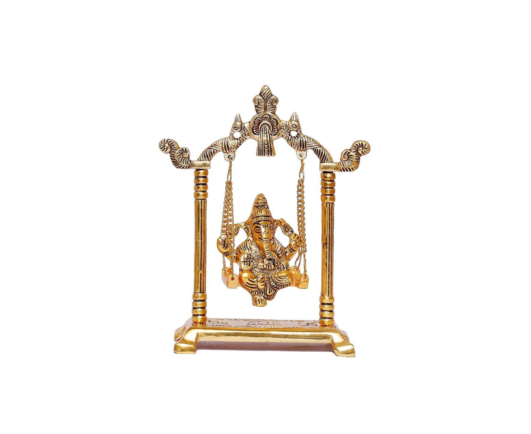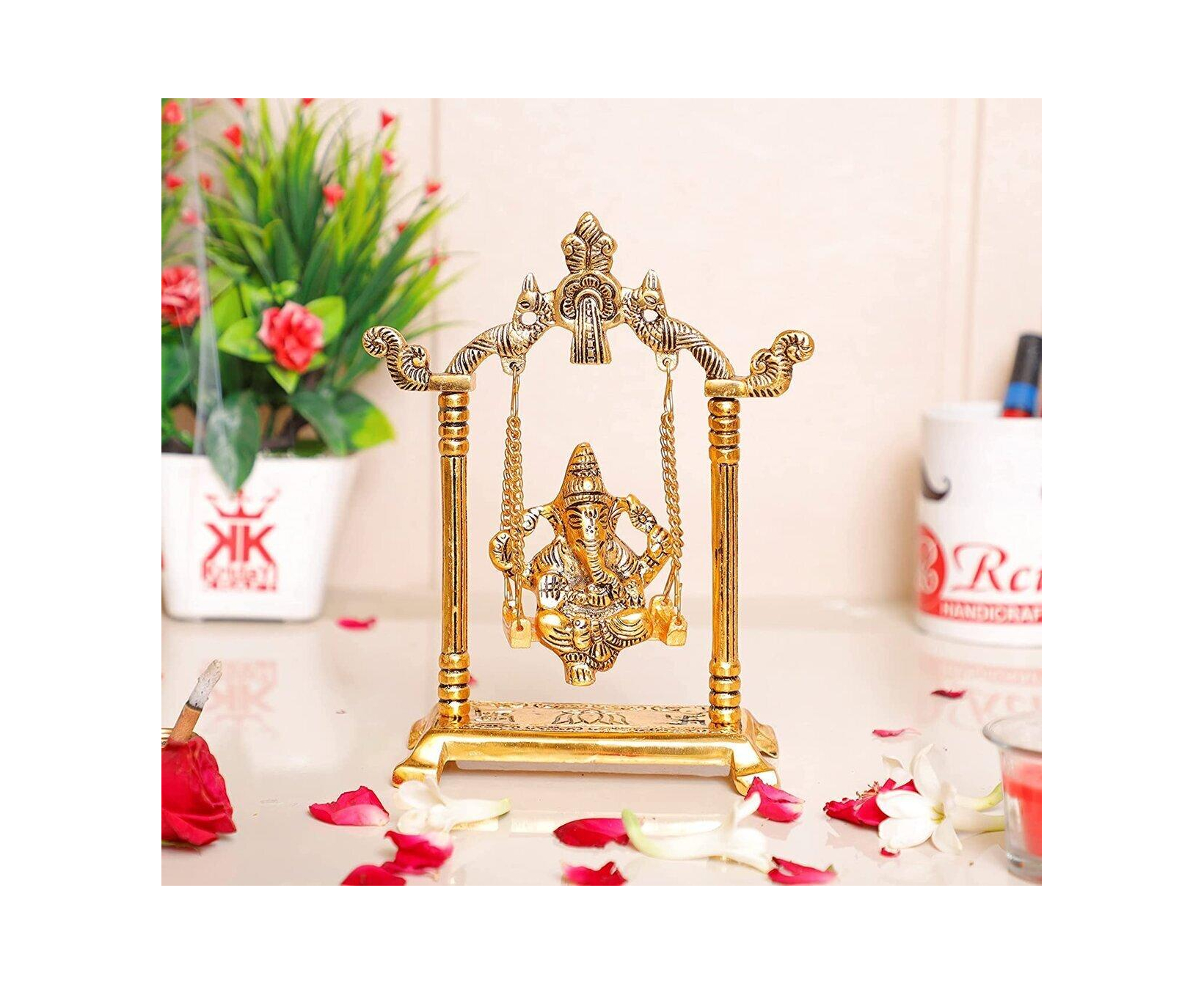 Ganesh ji jhula Idol, Ganpati Idol on Swing Jhula for Temple Pooja, Ganesh Metal Statue Home, Office & Table Decorative, Religious Showpiece Figurines, Corporate Gift Article
