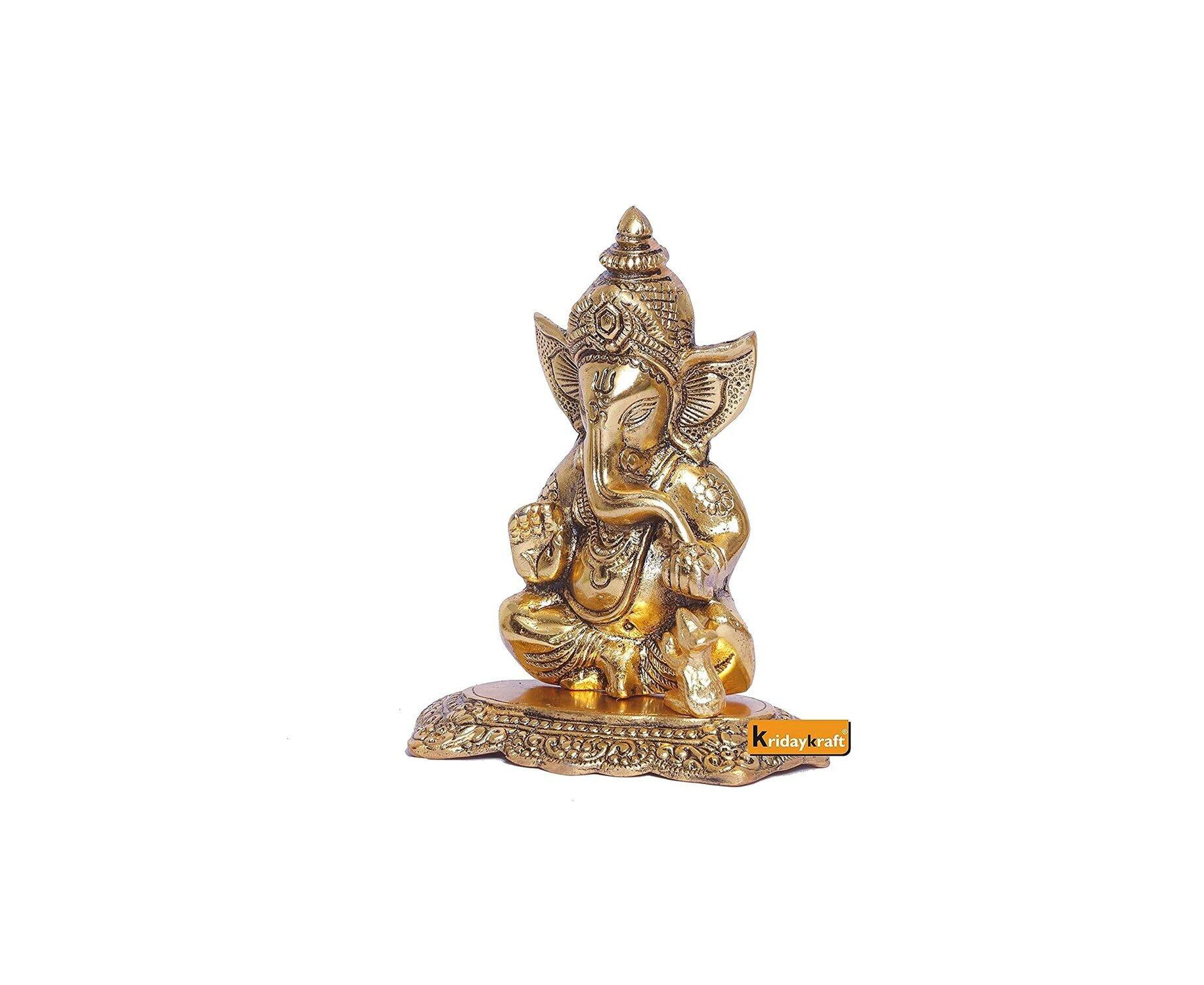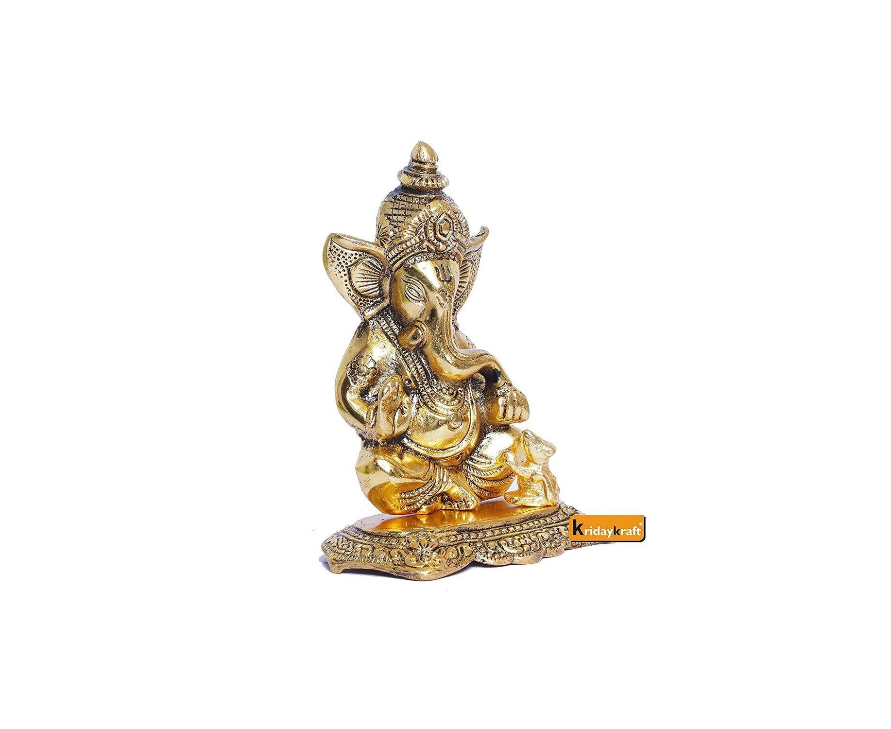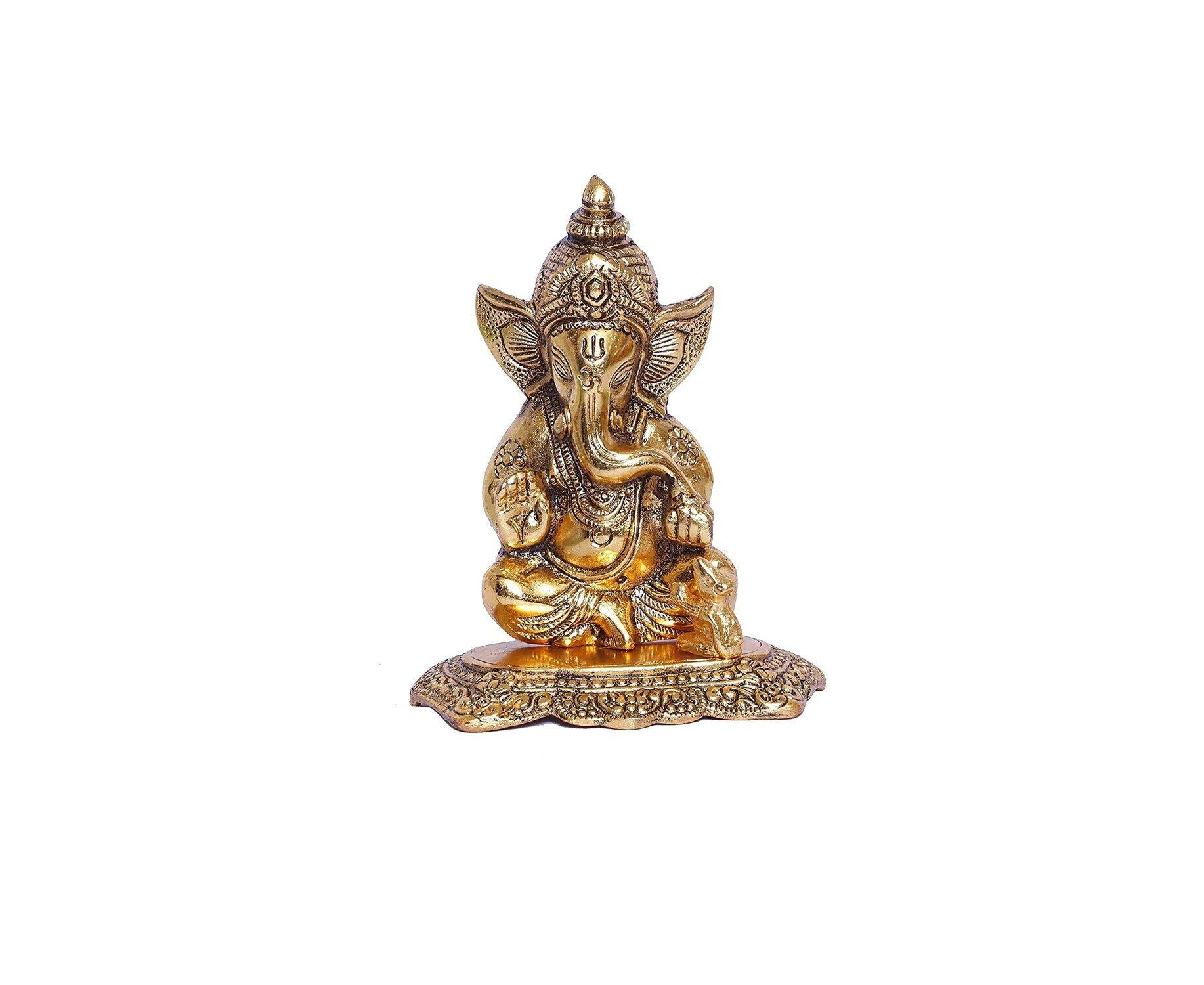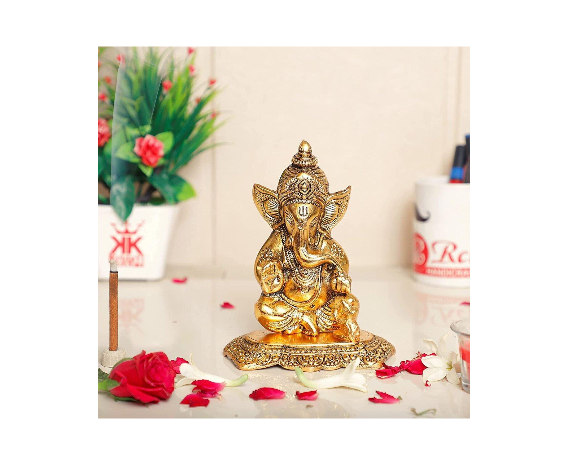 - Decor your home with metal handicrafts ganesha statue gold plated USE : This Decorative Murti can be used as Pooja Mandir Interior Decoration Accessories / Table Decor Items or Showcase Decoration.