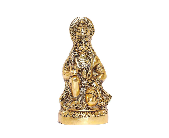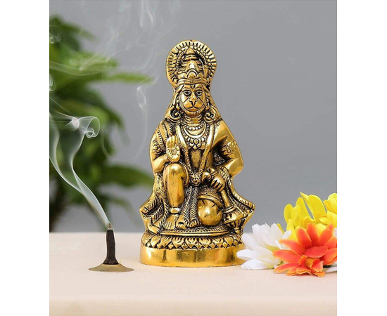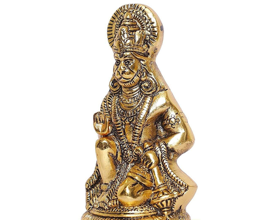 Hanuman ji Metal Statue in Sitting Pose/ Pawan Putra Idol, Bajrangbali God of Strength, Knowledge & Bhakti, Protector of Devotees Decorative Showpiece