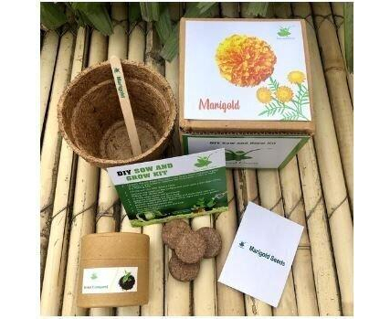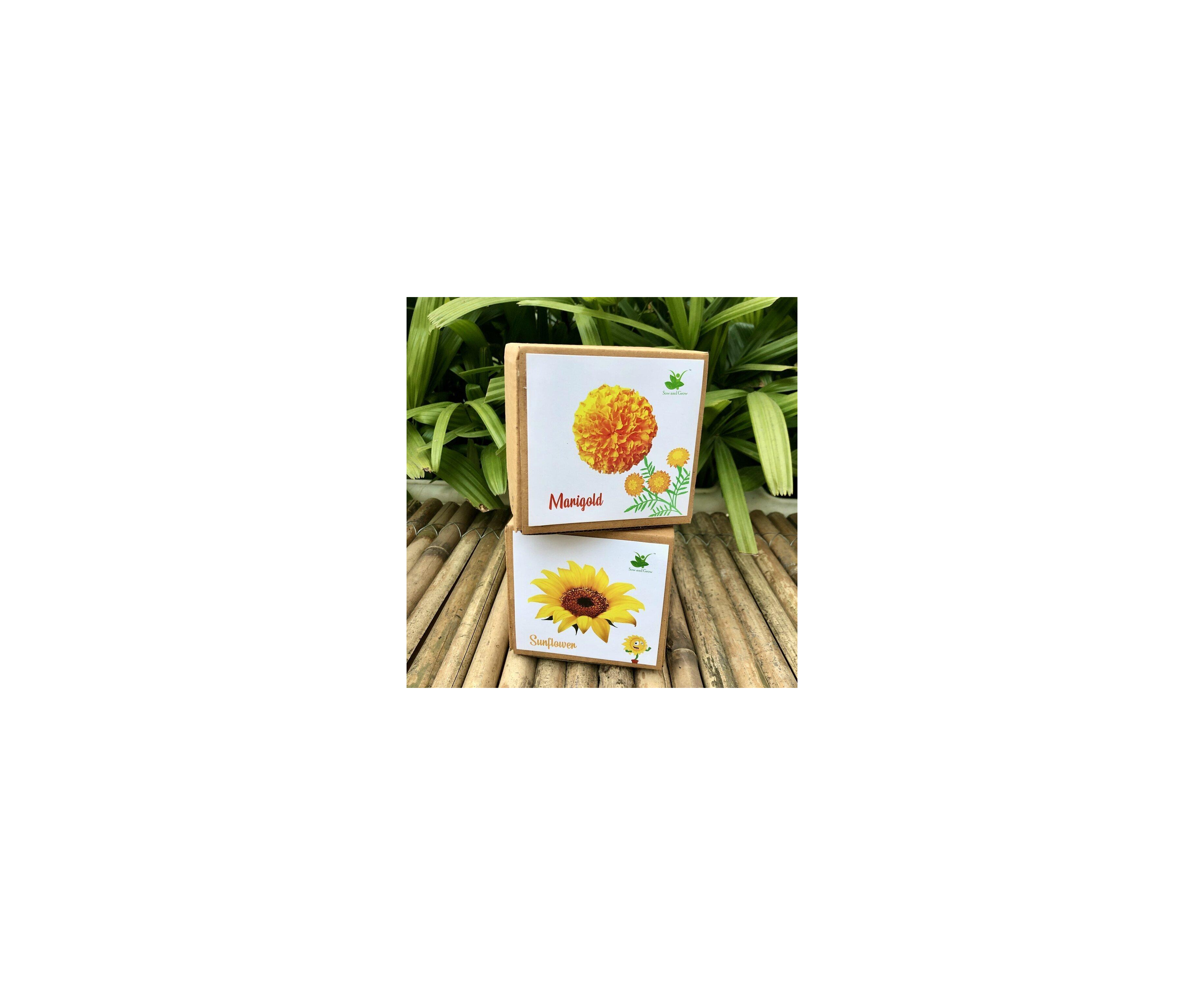 With the perfect selection of flower seeds for your little and cosy garden grow this DIY Flower kit with a mix of Marigold & Sunflower to grow your own garden Flowers at home.