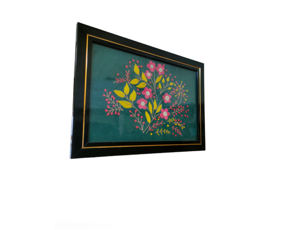 Hand Embroidered Decorative Frame 10 X 14" | Wall Hanging Decorative Wall Frames | Tapestry Aesthetic | fabric art | Hand Crafted Adorable framed Flowers embroidery | Housewarming Gift