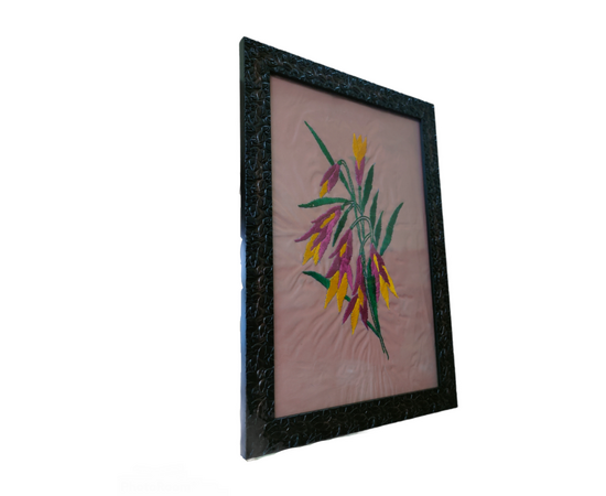 Hand Embroidered Decorative Frame 14 X 10" | Wall Hanging Decorative Wall Frames | Tapestry Aesthetic | fabric art | Hand Crafted Adorable framed Flowers embroidery | Housewarming Gift