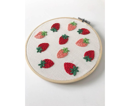 Strawberry Embroidered Hoop - Wood Decorative Display Frame - Hand Embroidered Decorative Frame - Wall Hanging - Modern Fiber Art - Embroidery Hoop - Wall Decor - Gift Item