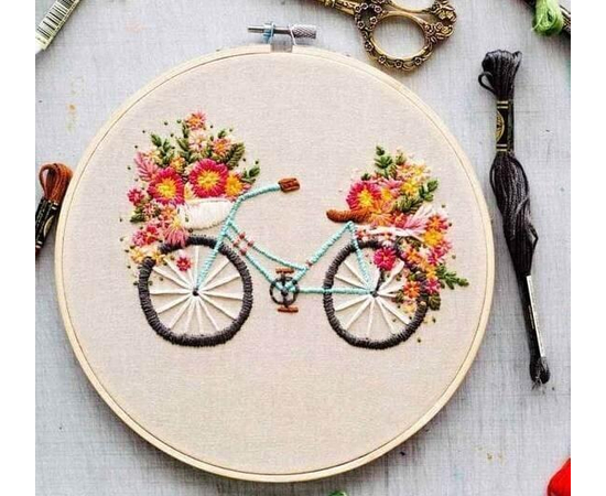 Hand Embroidered Decorative Frame - Cycle & Flower Embroidery Hoop Wood Decorative Display Frame - Wall Hanging - Modern Fiber Art - Embroidery Hoop - Wall Decor - Mother's Day Gift