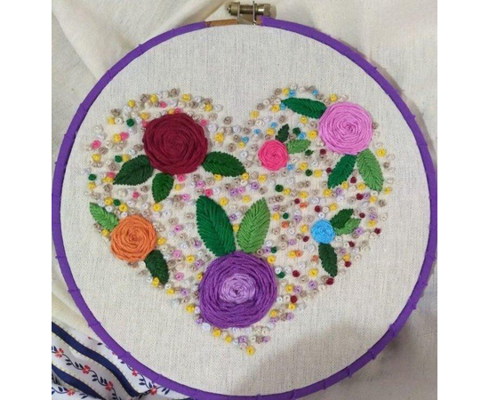 Hand Embroidered Decorative Frame, Hoop Art Frame, Round Wooden Frame wall hanging, Round frame to hang, Heart shaped Flower Embroidery Hoop Wall Decor, Gift Item
