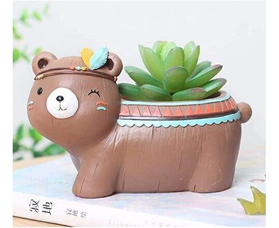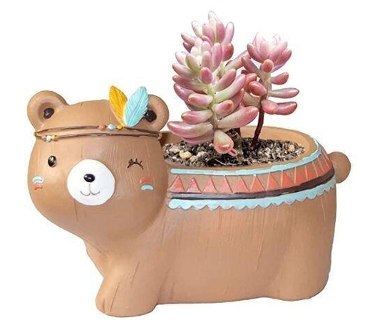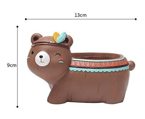 Handcrafted Cute Tribal Bear Succulent Pot Brown Mid Century Flower pot Small concrete Planters l Succulent Pot l Mini planters
