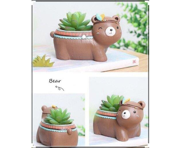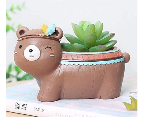 Handcrafted Cute Tribal Bear Succulent Pot Brown Mid Century Flower pot Small concrete Planters l Succulent Pot l Mini planters
