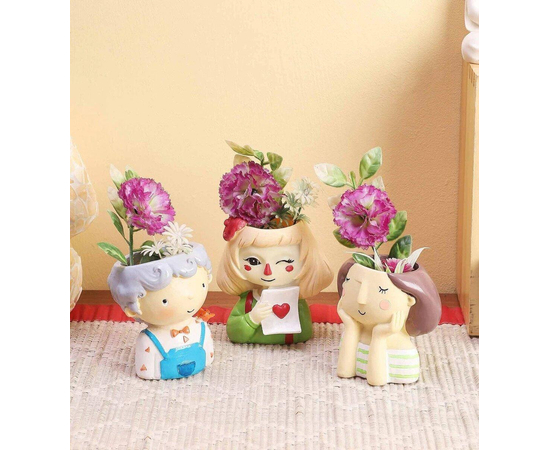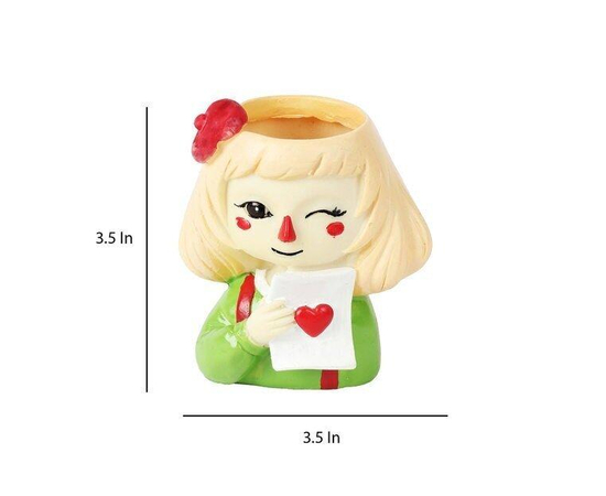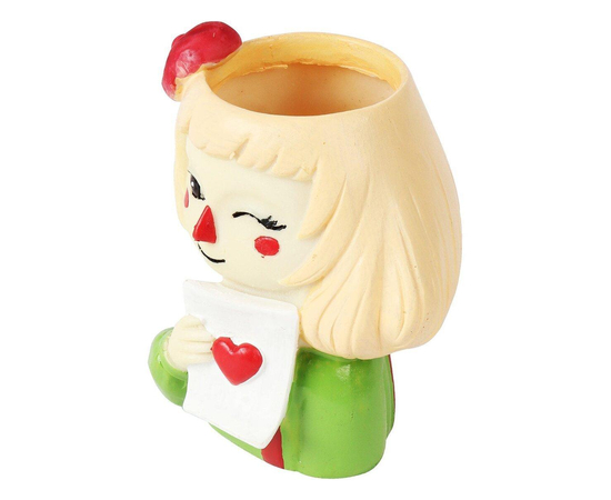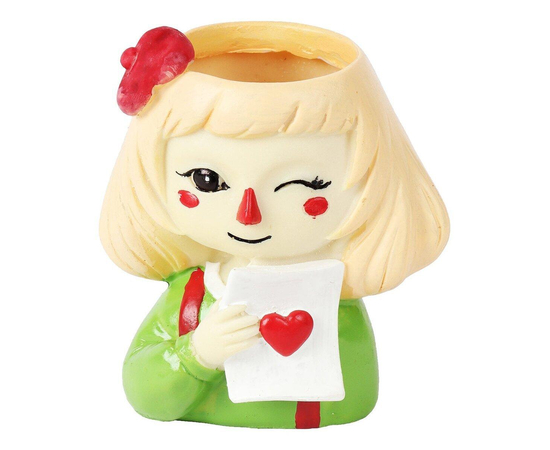 This cute winking heart Girl pot is great for mini succulents and cacti or any other small plants. Hand-painted distinctive, funny ornament for whom like gardening.