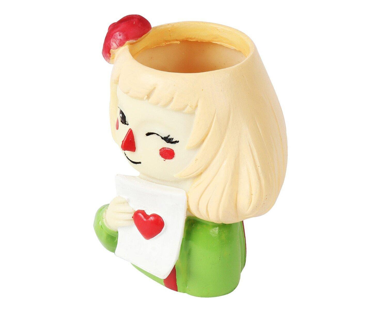 This cute winking heart Girl pot is great for mini succulents and cacti or any other small plants. Hand-painted distinctive, funny ornament for whom like gardening.