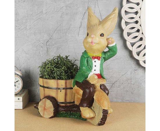 Handcrafted Rabbit on Cycle Planter Medium Bunny Planter, handmade flowerpot, handmade rabbit planter, rabbit gift, cacti planter, succulent planter, sweet decor.