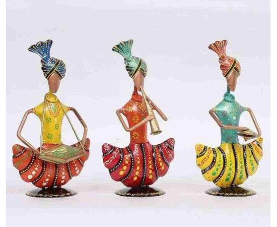 Handmade Decorative set of 3 Sitting Sardar Musician figurines, Vintage Home Decor, Modern Home Decor
