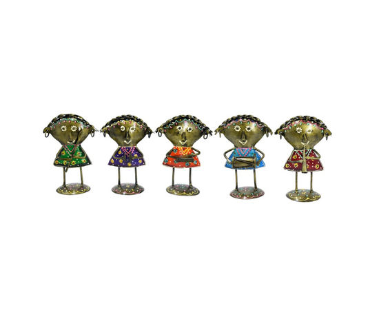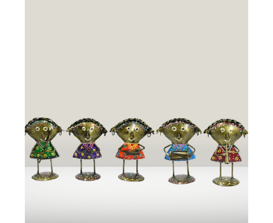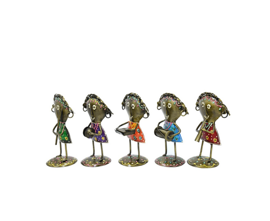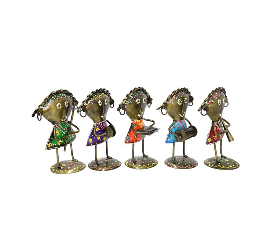 Handmade Metal Decorative Beautiful Colorful 5 Musicians Aadiwasi Doll Wall Decor for Living Room/Bedroom