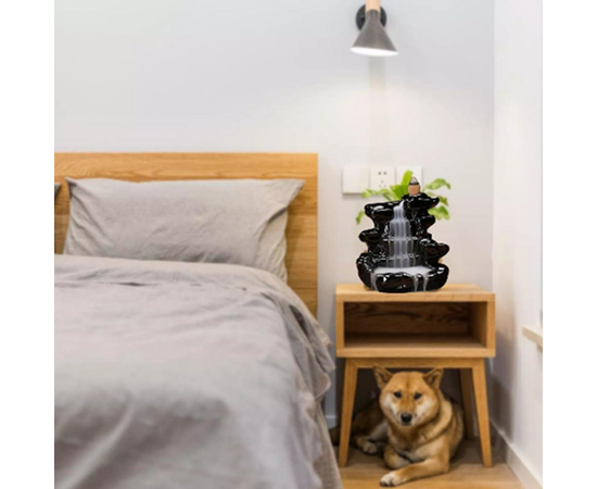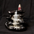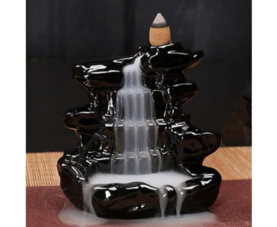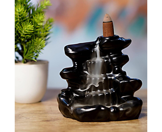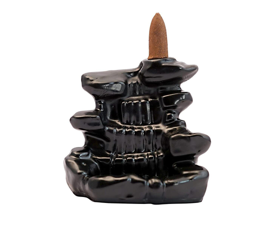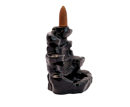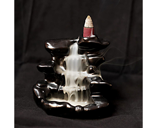 Backflow Smoke Fountain Incense Holder. We present this beautiful backflow incense burner that is hand-crafted. Incense burners are ideal for burning your favorite incense while providing a decorative accent to any space. Black Fountains Back-flow incense burner creates an illusion of a smokey waterfall. This piece of art has a fountain waterfall. Simply place an incense cone at the top of the waterfall, and with the cone's special properties, the smoke starts to flow in reverse direction, that is from top to bottom, and in turn creates a beautiful Smokey waterfall. Perfect for your apartment, living room, office, tabletop, bedroom, or meditation room. These marvelous resin incense burners will provide years and years of usage and are an easy way to add a beautiful fragrance to your home or office.