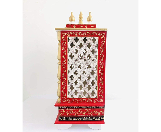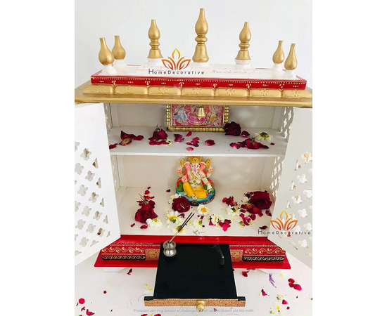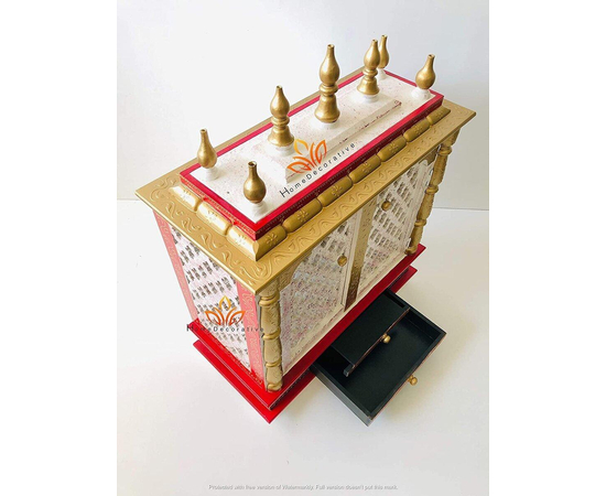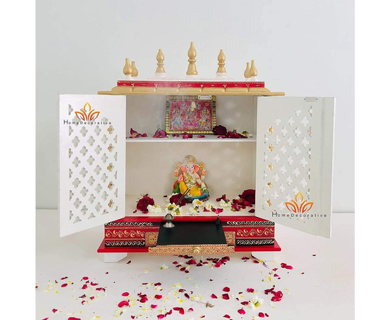 Home decoaraive Handpainted Wooden Home Temple/ Home mandir/ god stand for home/ pooja stand/ home mandap/ mandapam/ pooja mandir with Doors and Big Size (Color-white Red) (in Side LED Lights) Large Size- 24x12x30 Inch