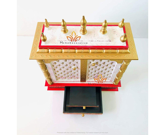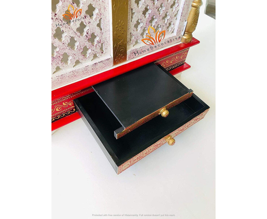 Home Decorative Handpainted Wooden Temple Large Size 24x12x30 (White & red, Large)