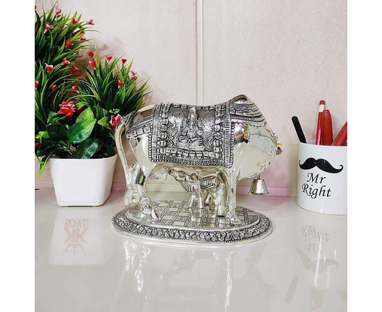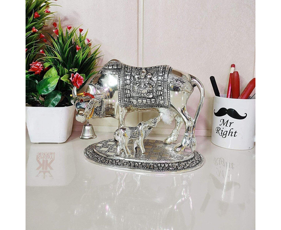 Religious cow idol along with its calf is the symbol of prosperity and vatsalya (love of mother for a child). This holy cow will enhance the good luck of your house. Made in india Great for gifting during weddings, anniversaries, house warming ceremonies, venture, award ceremonies etc.