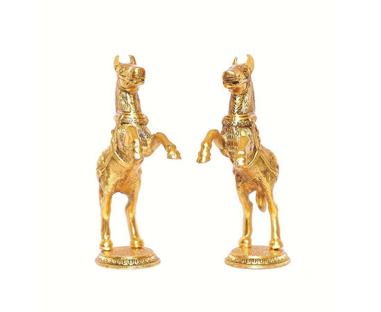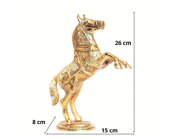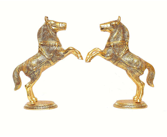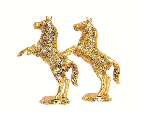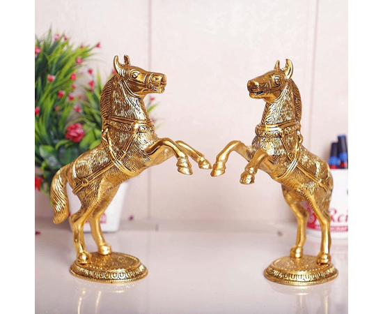 Kridaykraft Metal Golden Finish Horse with antique finish so looks very beautiful and use for the purpose of worship and for home decorative. It's design to looks traditional stylish and inspiration from the day's of royal touch, that is made in white-metal casting with silver antiques finish, white metal to bring elegance to your home. This is hand made handcrafted items use it to religious worship of god & goddess. That is use and utility items & an ideals gift it to your dear once to pass on your best wishes, that is an ideal gift for have House warming anniversaries, birthday, wedding gifts, return gifts, corporation gifts, religious-gifts & Indian festivals. Our White Metal Gold Plated Jumping Horse Showpieces is an impressive piece of art that is made from the finest-grade raw materials and intricately designed by our teams of adroit designers and craftsmen using high-end technologies.
