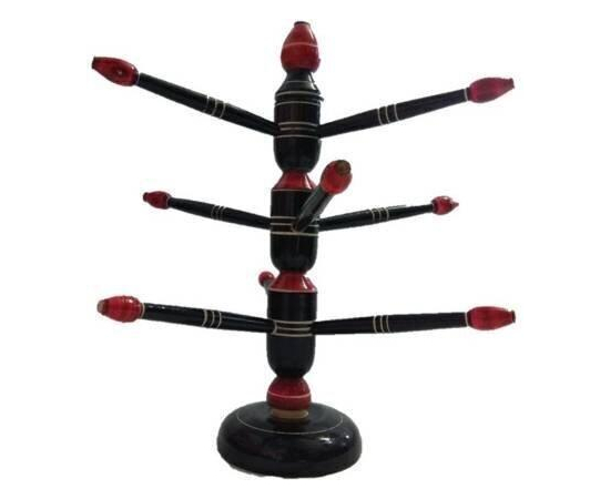 - Made from Indian wood with weight on the circular base to prevent tipping over after hanging jewelry.