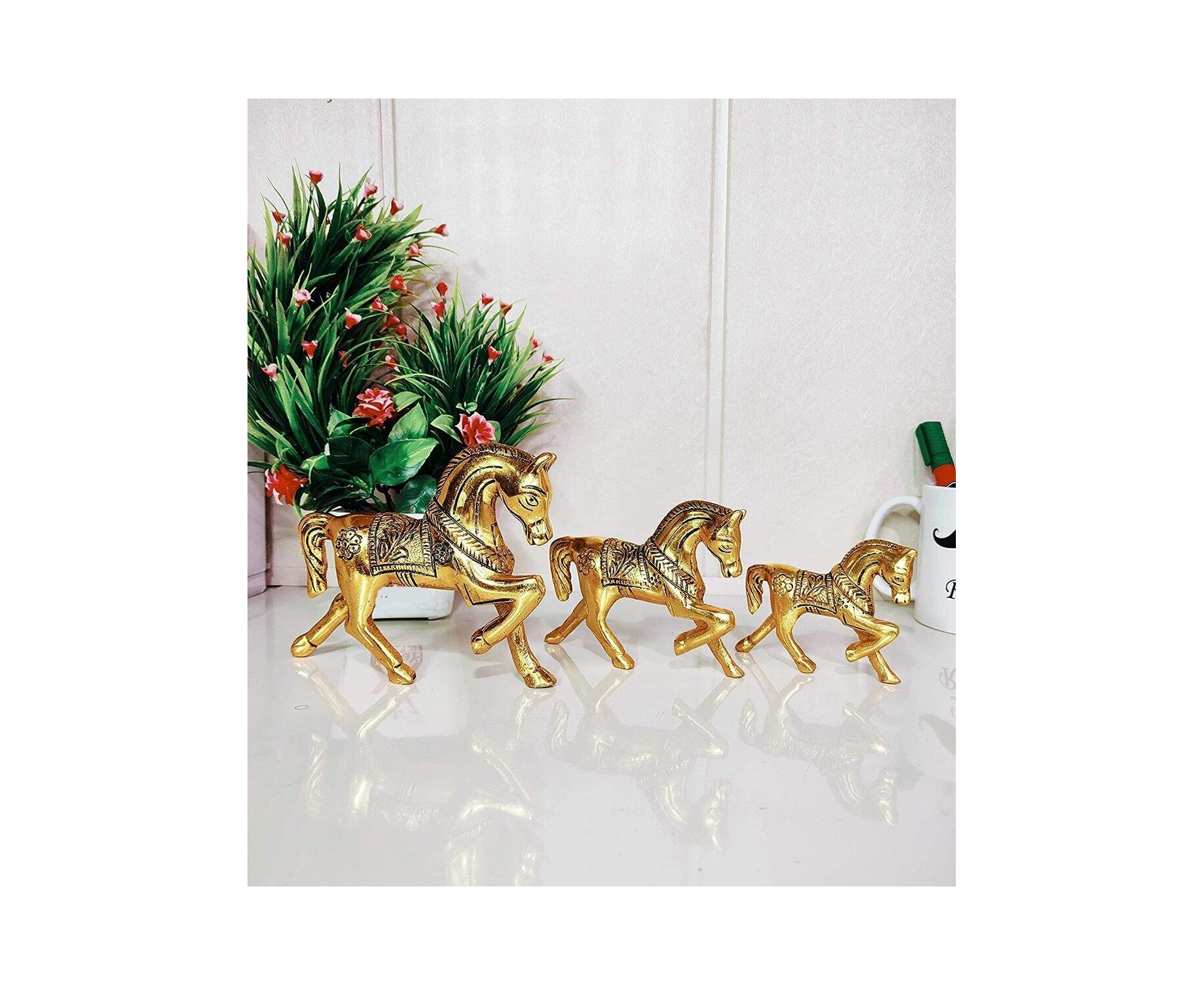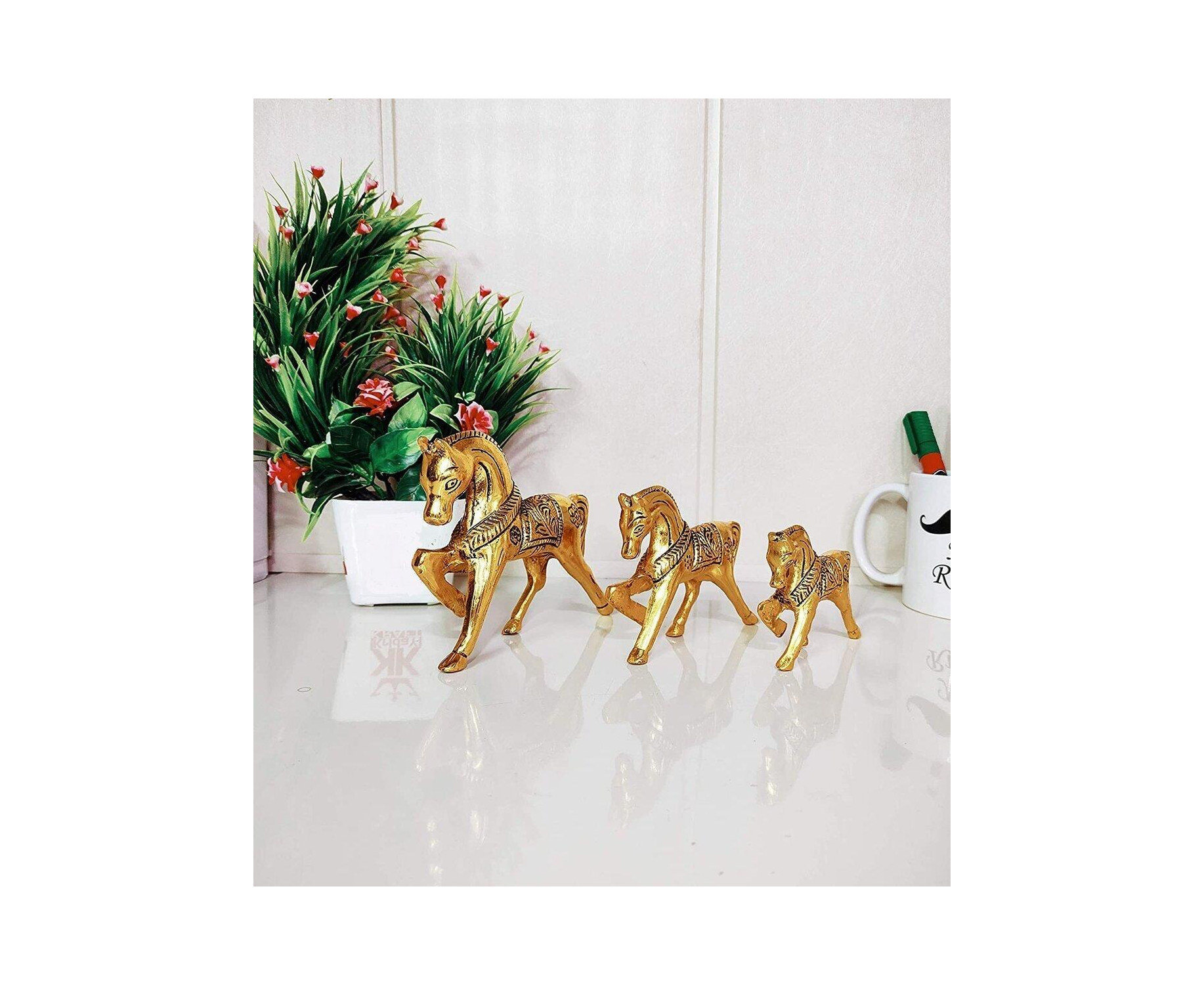 Metal Pegasus Horses Figurines, Pair Horses Statues, Horse Set of 3pcs Gold Plated Metal Artwork, Handmade Craft figurine, Home Decor Table Top Display