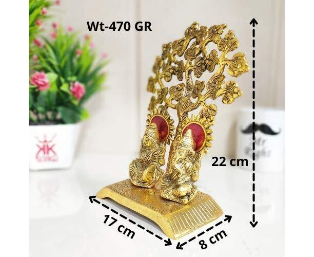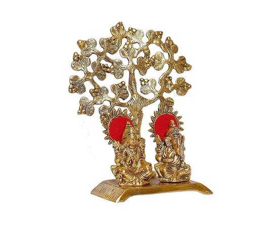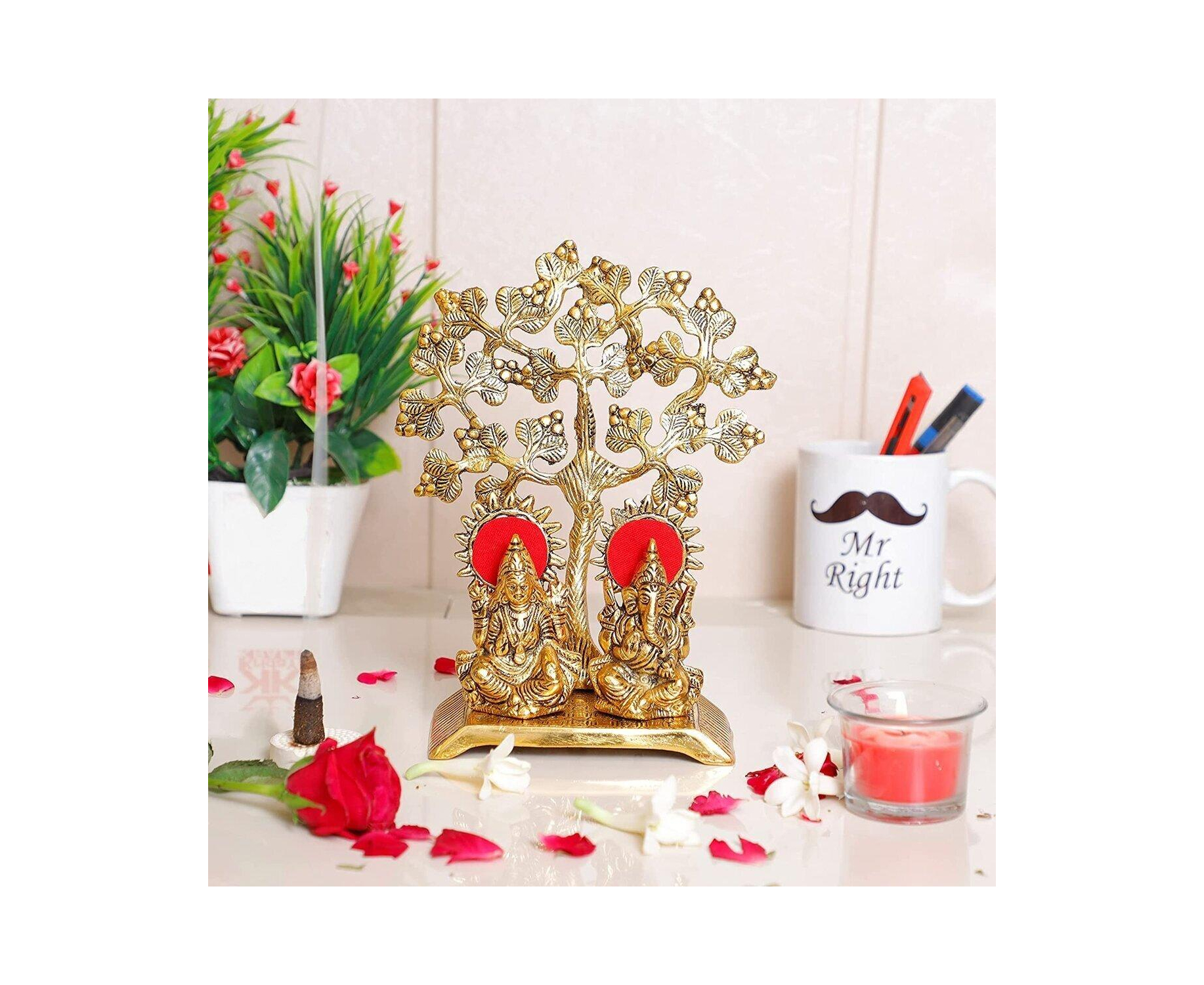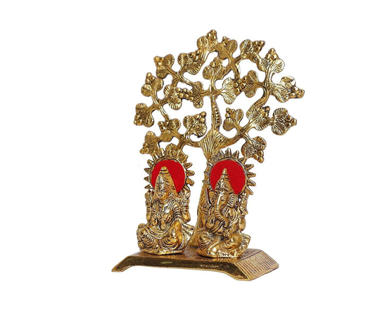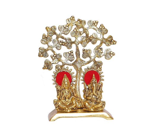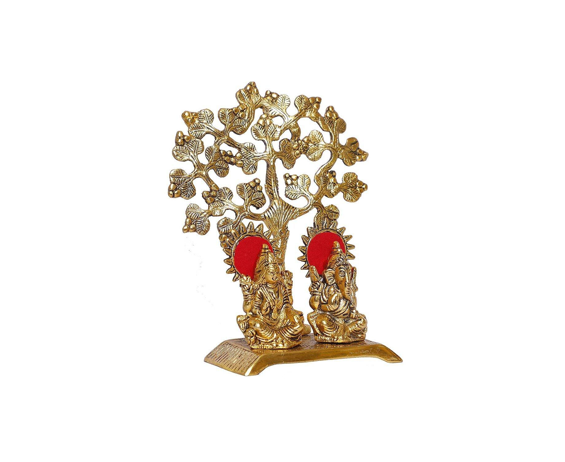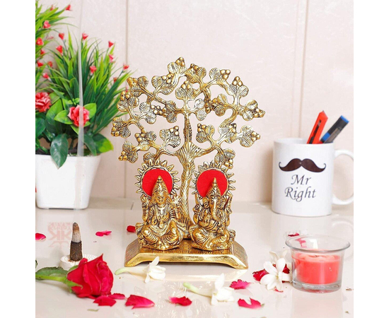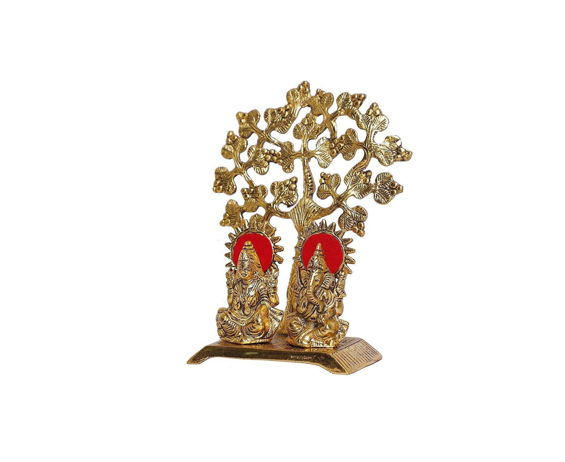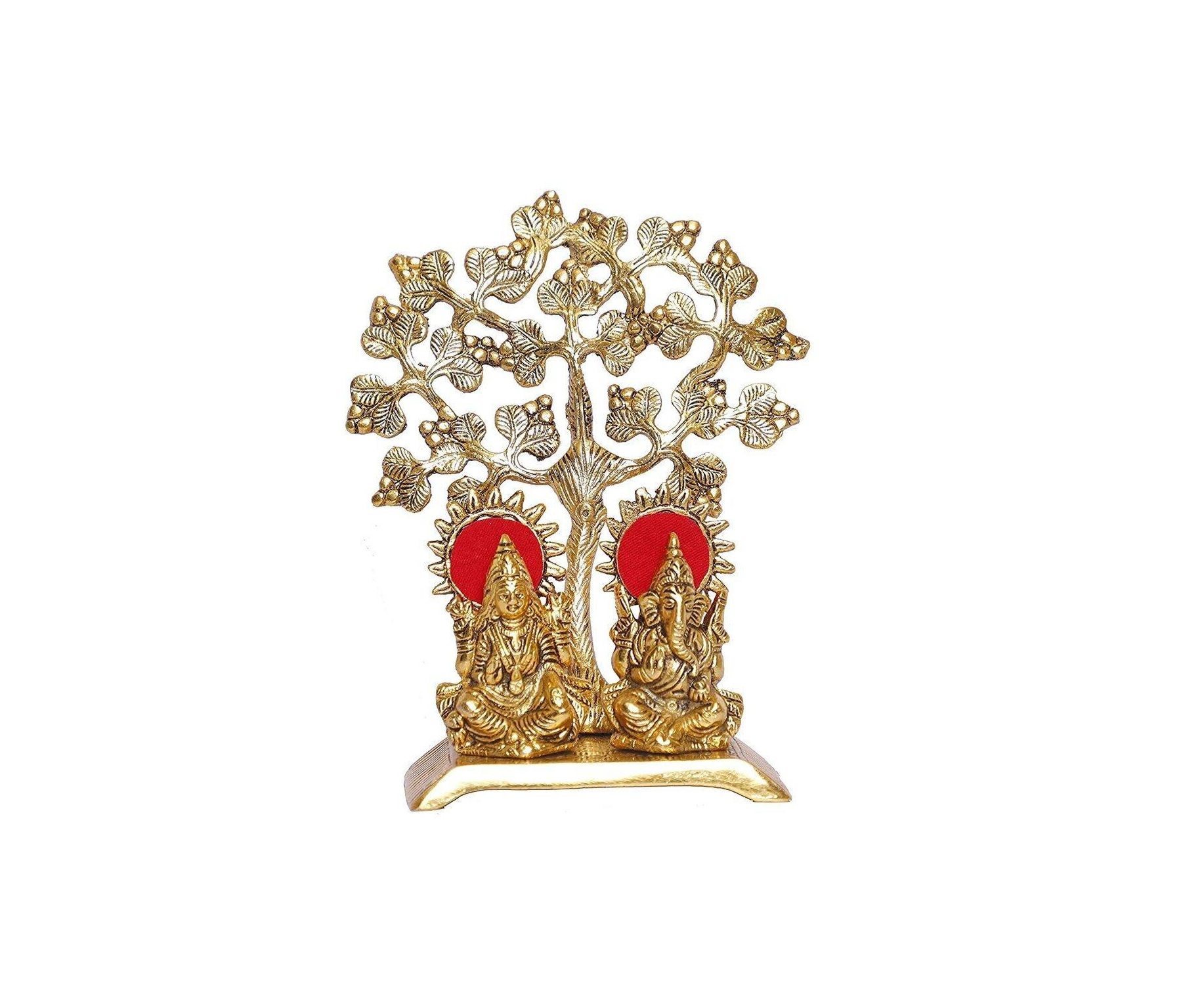 Metal Laxmi Ganesha Statue Under Tree/ Set of The Idols of Lord Ganesha and Goddess Laxmi Unique and One of A Kind Rare Handcrafted Idol for Pooja Room