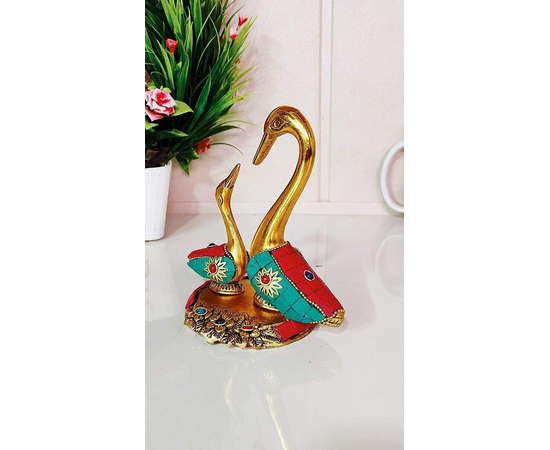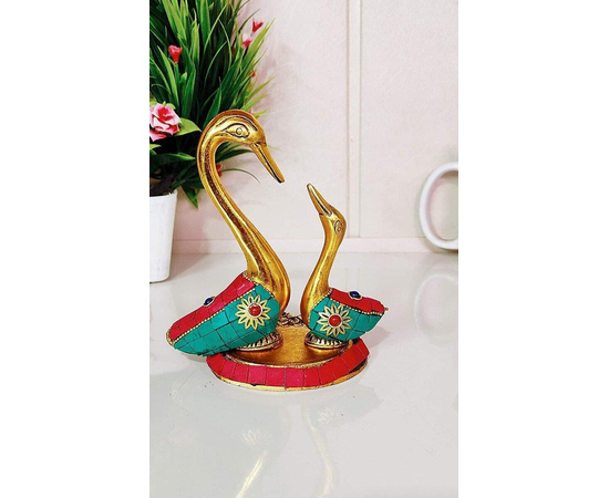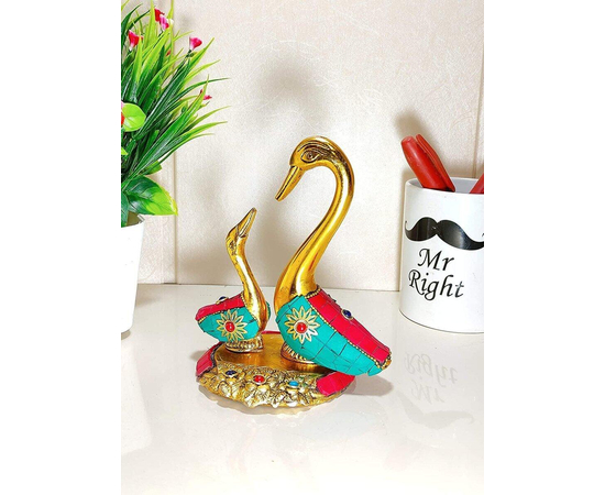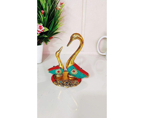 From the manufacturing house of Kridaykraft Metal pair of kissing ducks observe a Feng shui symbolizing love and luck. According to Chinese beliefs, if placed together, the pair of ducks can speed up your search for a soul mate or even settle issues between couples. . Metal Pair of Swan Statue Showpiece Vastu Decorative Figurine. This is a unique antique statue for Home Decor. This Design is Traditional Stylish and Inspiration by the days of the royal era. This is made of White Metal Casting with Gold Antiques finish with stonework. Our White Metal Gold Plated swans (saras) is an impressive piece of art that is made from the finest grade raw materials and intricately designed by our teams of skillful designers and craftsmen using high-end technologies. Add an element of spirituality to your home decor with this Showpiece Figurine. It could be a great gifting option for religious celebrations or festivals.