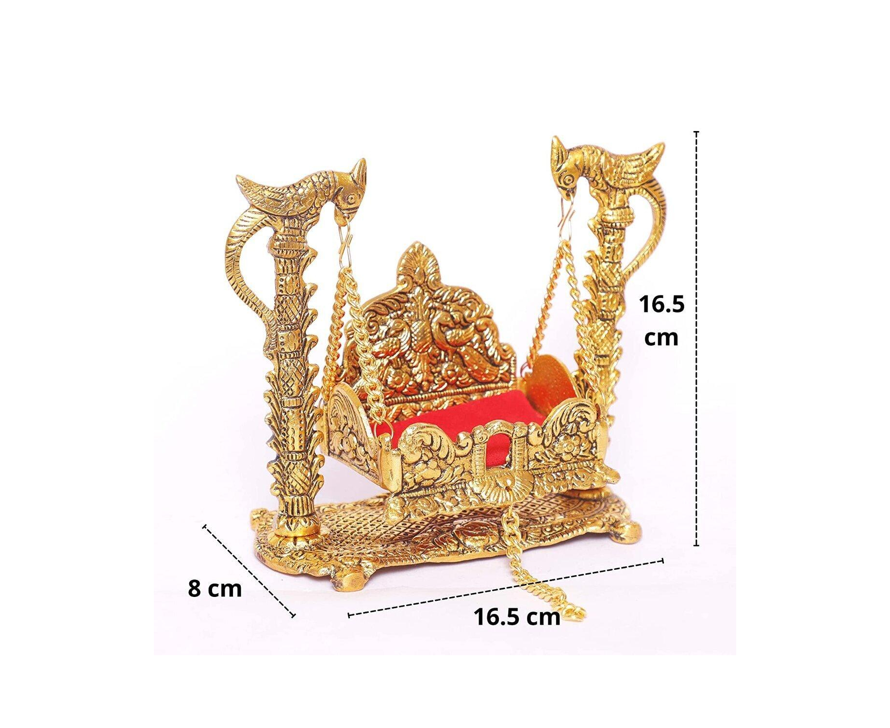 Metal Swing Laddu Gopal Jhula, Krishna Hindola Palna, Decorative Laddu Gopal for Temple Pooja, Showpiece Figurines, Religious Idol Gift Article