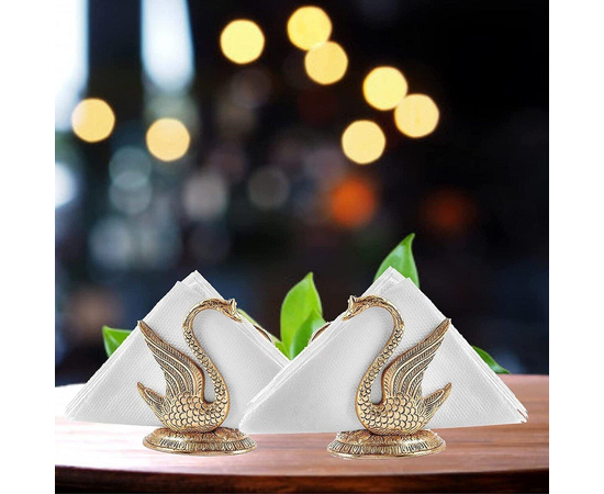 Oxidize Metal Decorative Golden Swan, Duck Shape Napkin Holder, Antique Home Office Tableware Handicrafts Showpiece Gifts, Golden Swan Duck Shape Napkin, Tissue Paper Holder for Dining Table 2 pcs Set