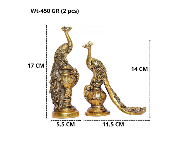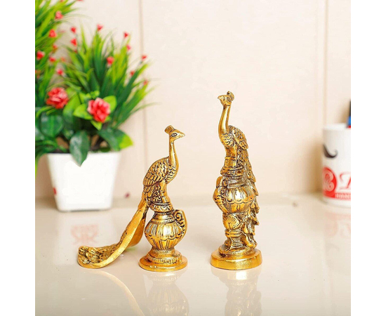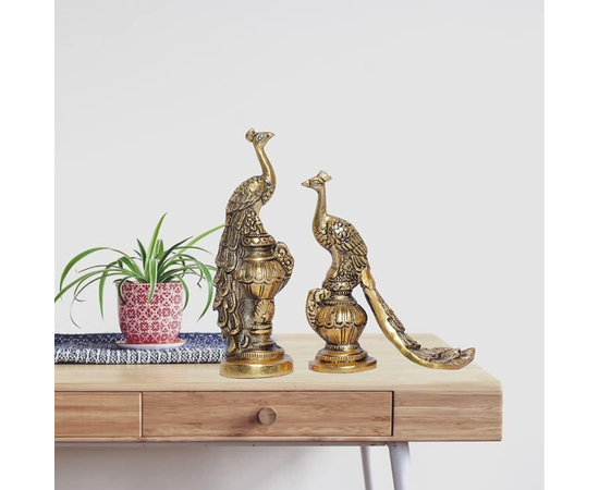 Give a Premium Metals Touch to a corner of your home with Pair of Peacock Brass Antique Finish Showpiece. Featuring an excellent finish, this statue looks extremely classy and elegant. This royal piece of art simply shows that how can a simple work of art turns into a master piece of craftsmanship. It can also serve as a great gifting option for your loved ones, family and friends.