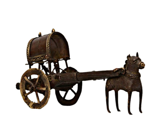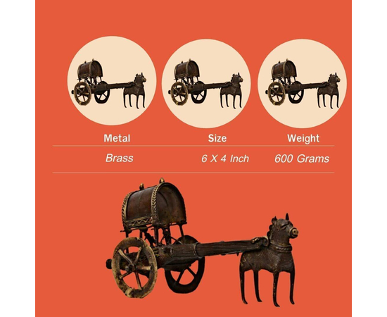 Pratibha Art Handmade Brass Horse cart Figurines - Dhokra Art - Bastar Art Horse Cart for Home Decoration, Brown Antique Finish - Metal Brass Home and Office Table Decor